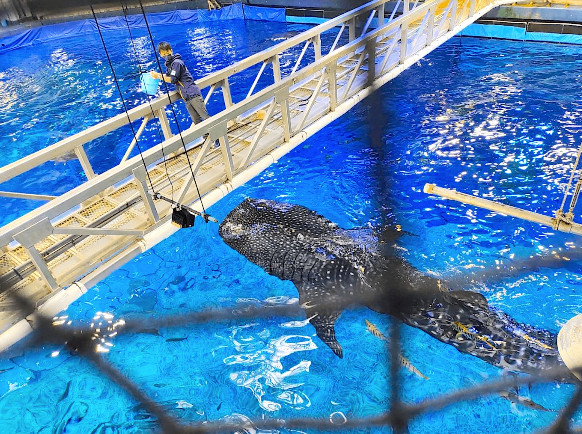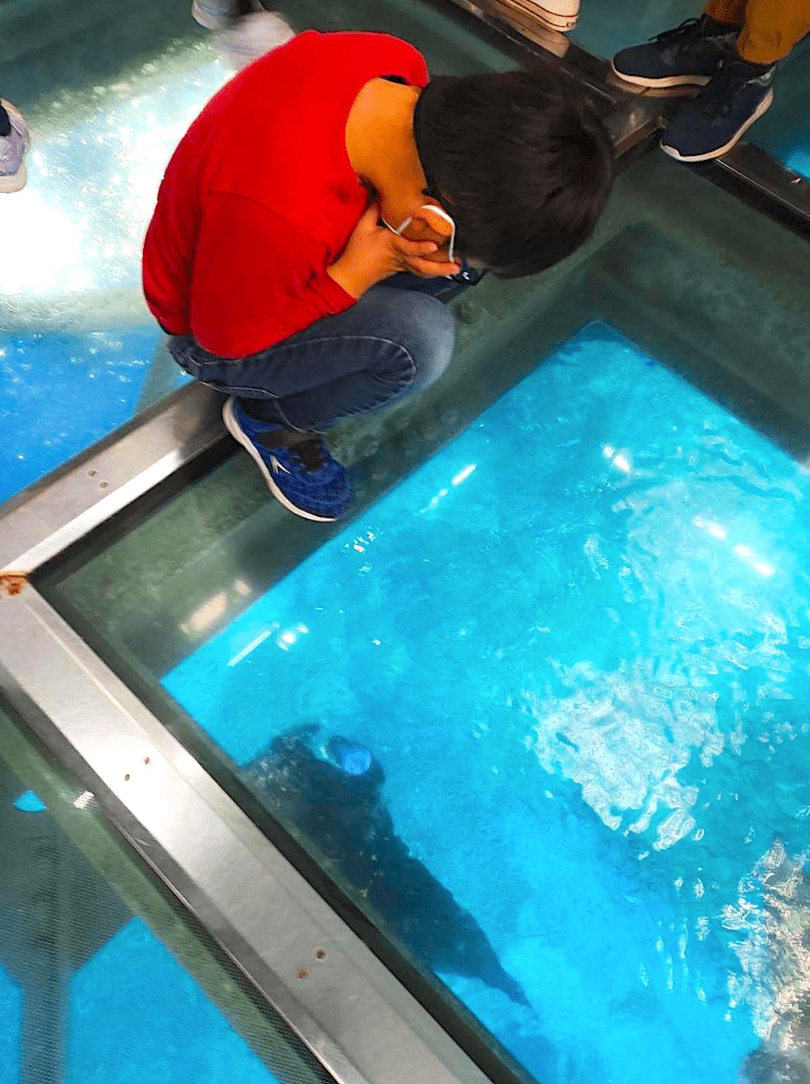 上から海中にいるジンベエザメを見る感覚で楽しめる