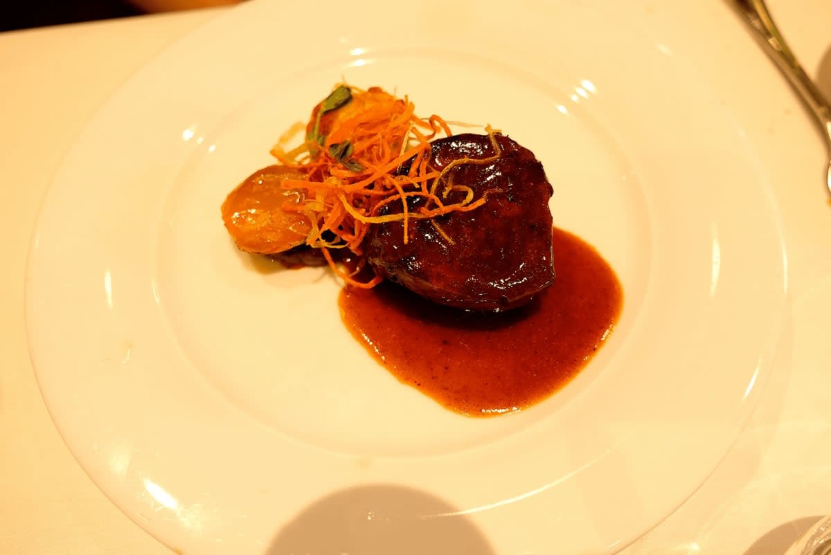 メイン:ビーフテンダーロインのグリルトスカーナ風キャンティワインのグレイズ