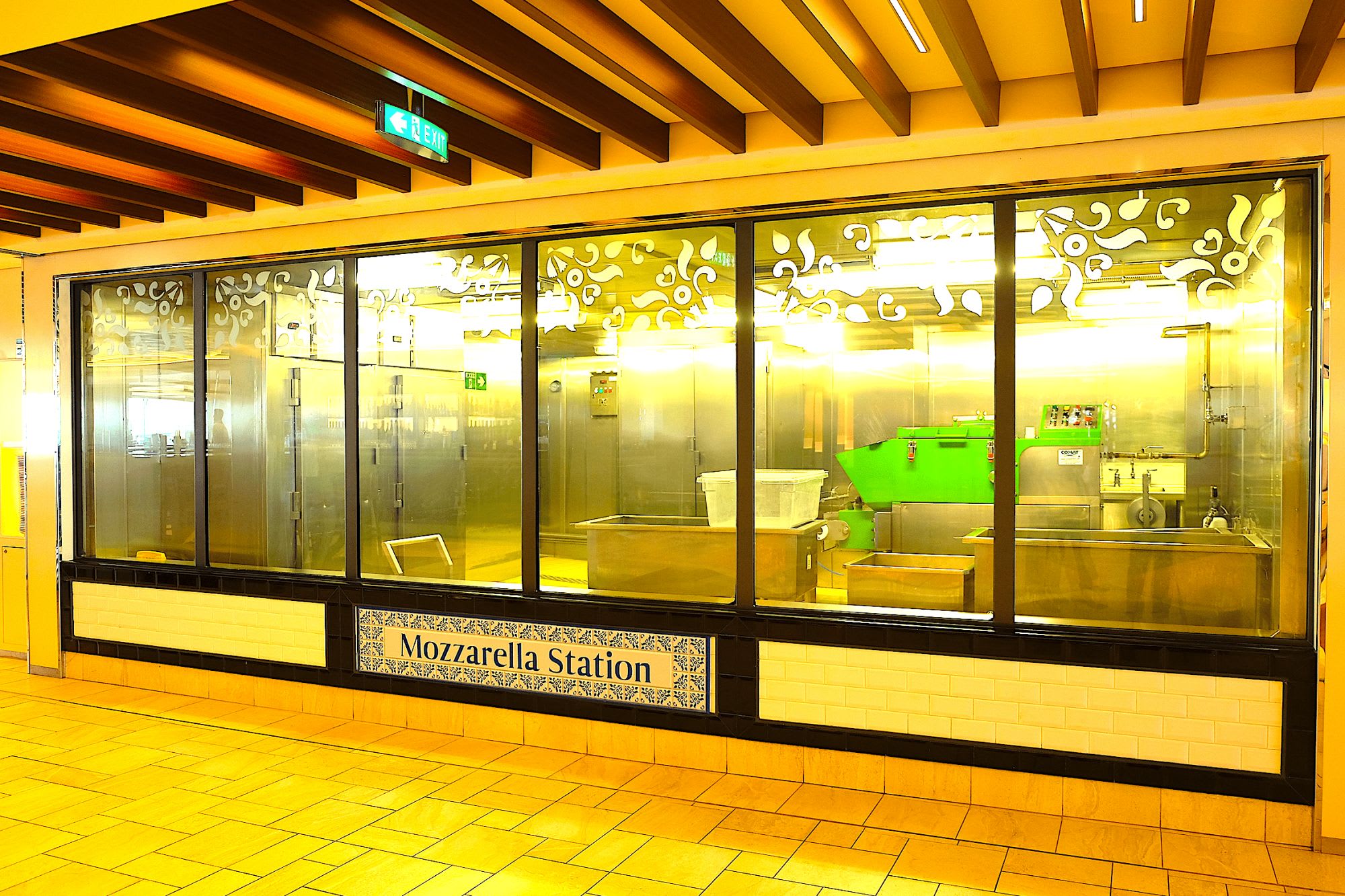 大型のモッツァレラチーズ製造機が迫力ありますね!
