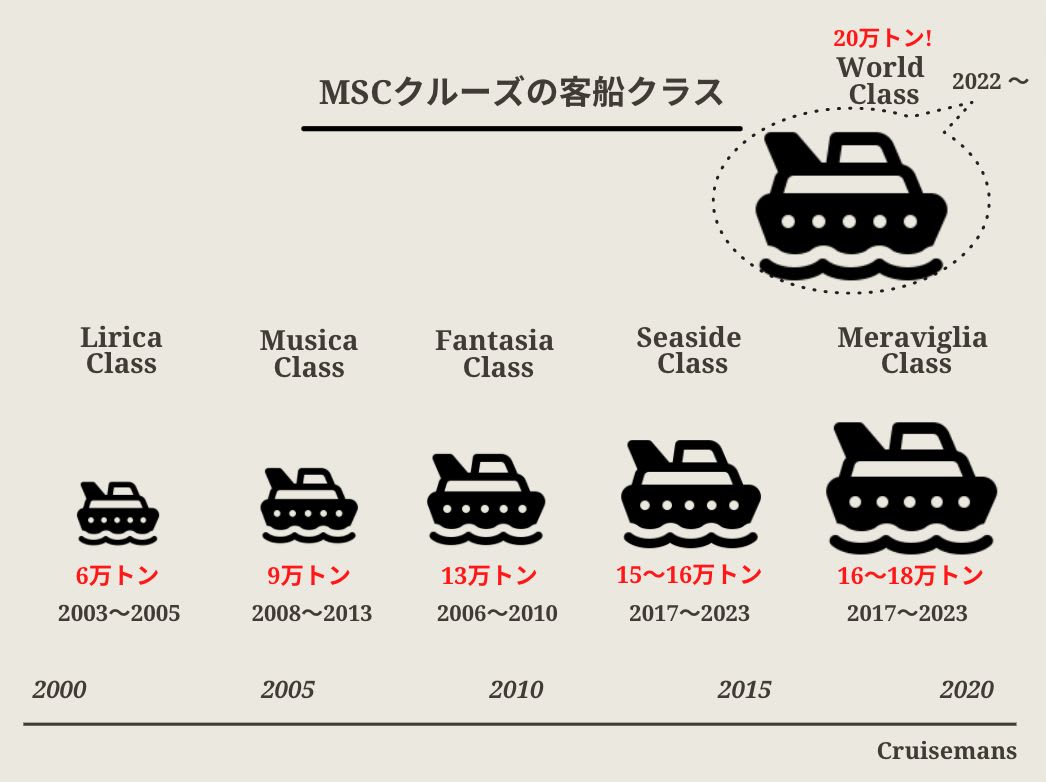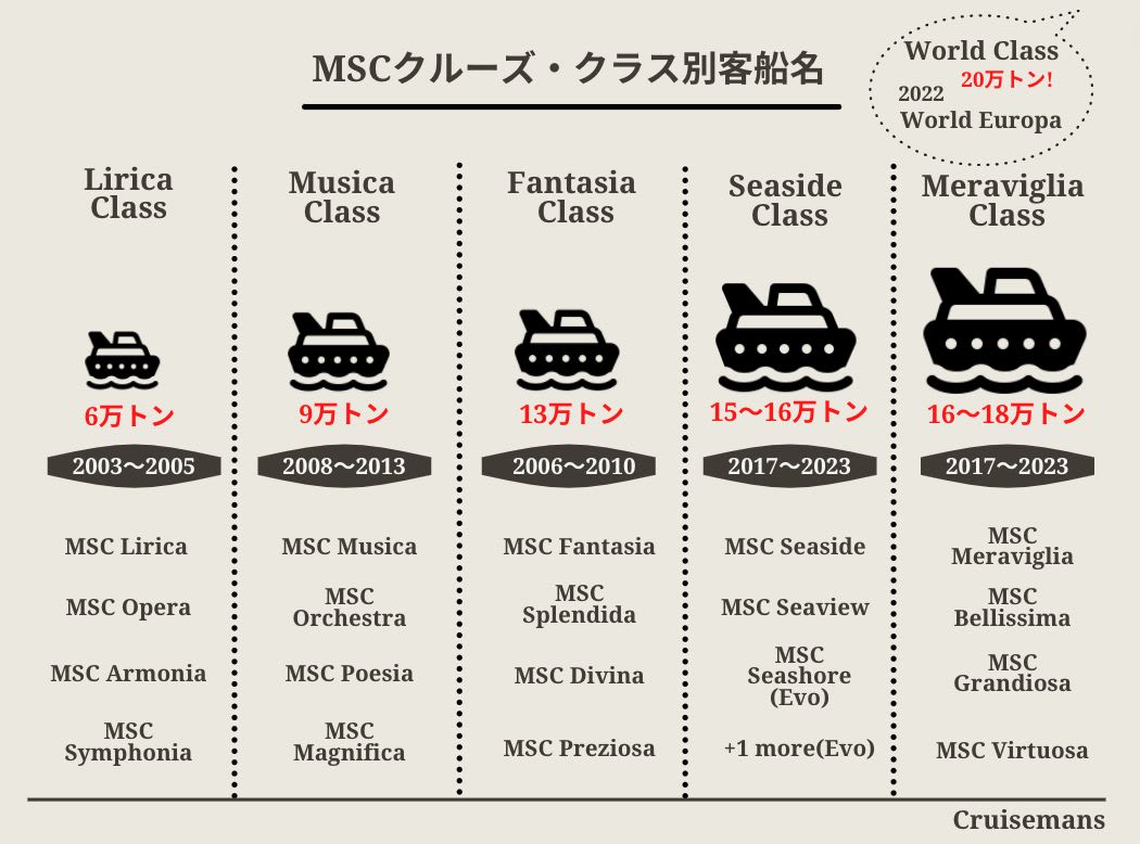 1-2. MSCクルーズ客船は全6クラスに分けられる
