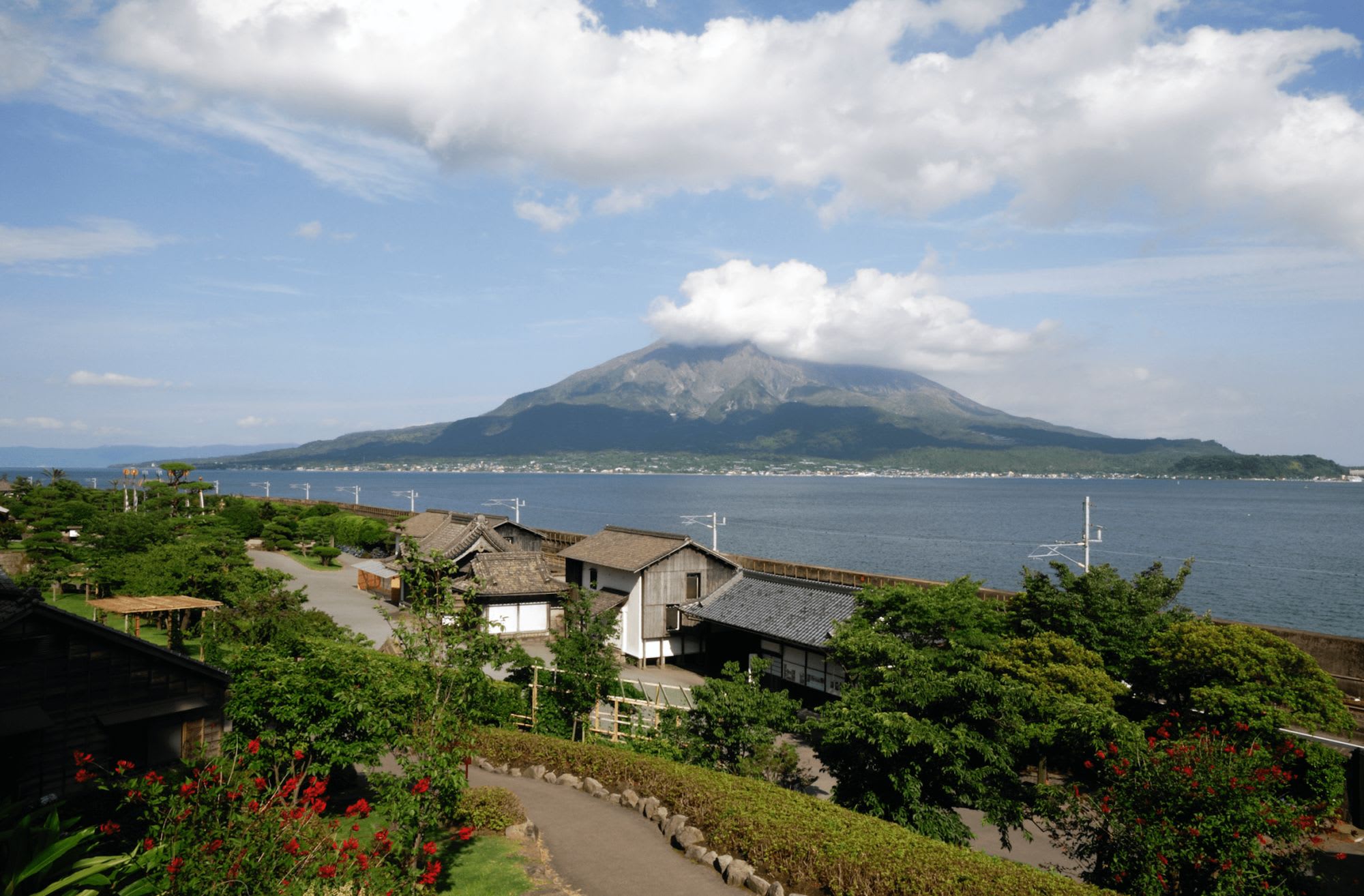 仙巌園から望む桜島/公益社団法人 鹿児島県観光連盟
