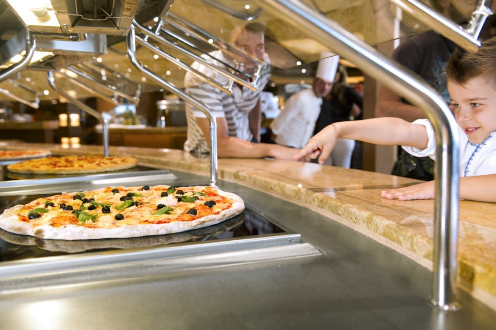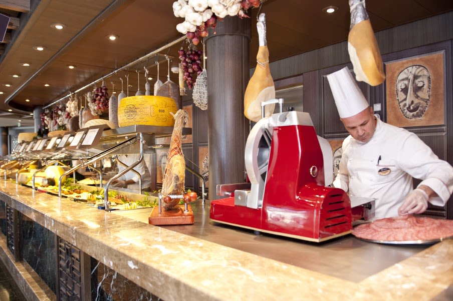 MSCベリッシマ ではそんな心配はご無用。基本代金に含まれるメインレストランやブッフェをはじめ、スペシャリティレストランもバリエーション豊かにご用意。