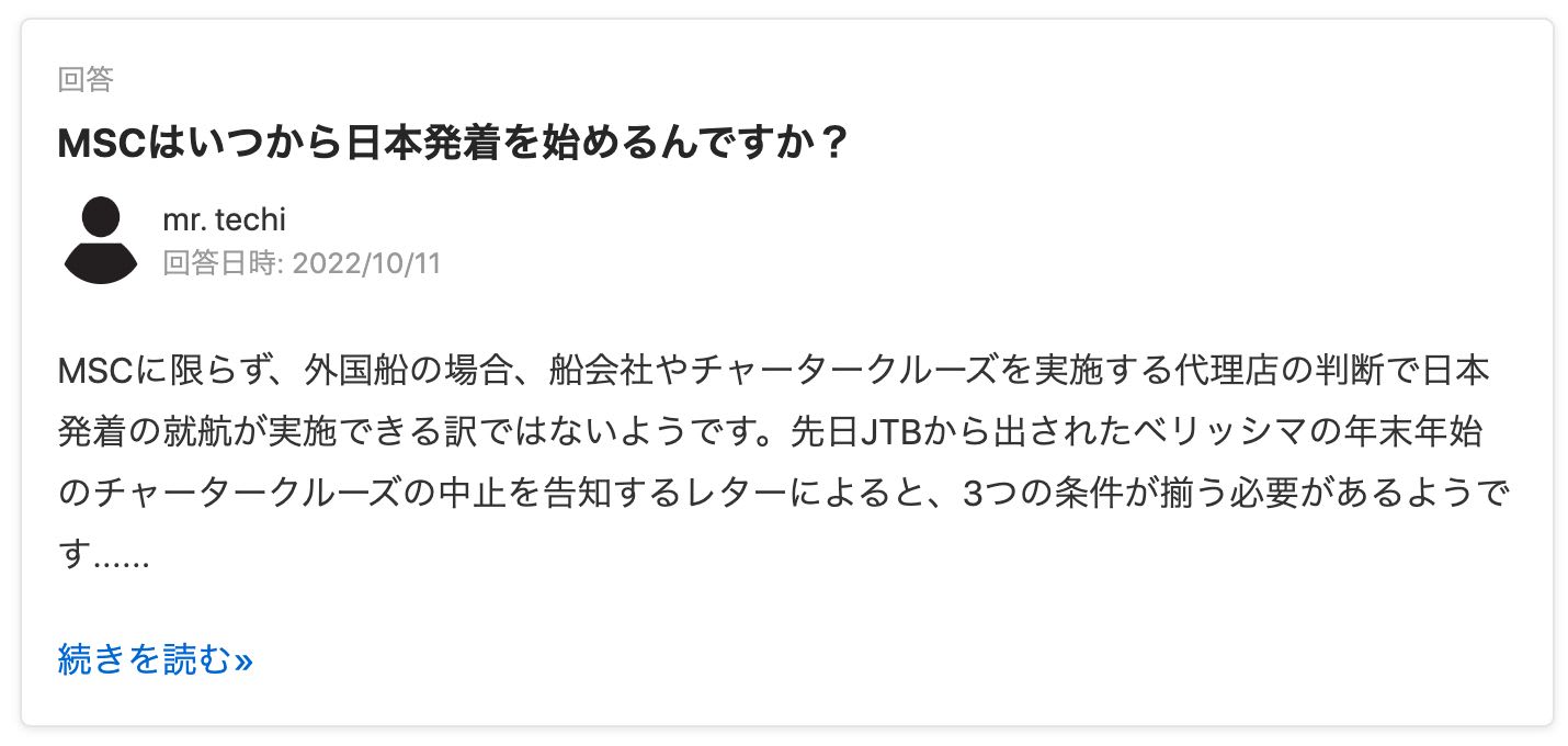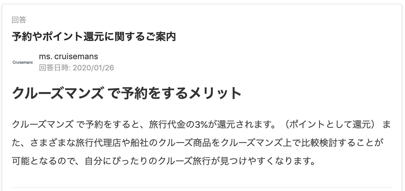 Cruisemansでは、クルーズ旅行経験豊富なユーザーの方にクルーズ関連の質問ができる、Q&Aサービスがありますよ!