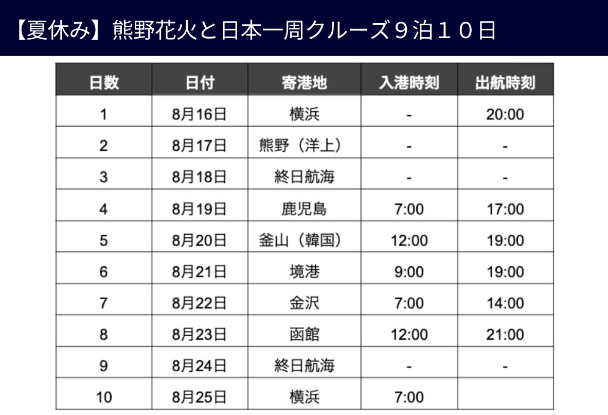 久しぶりの日本発着クルーズのイメージが膨らんできましたでしょうか?