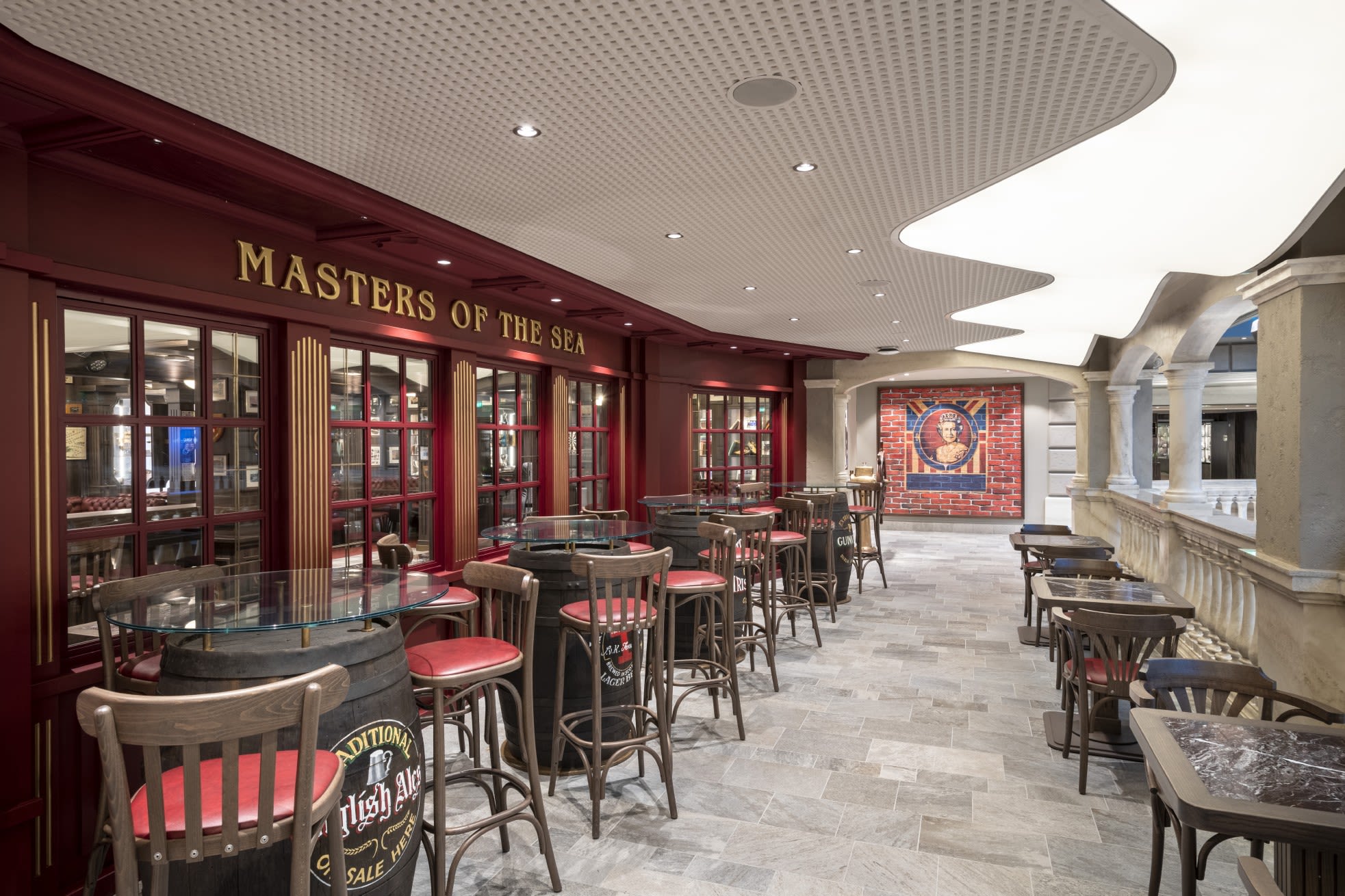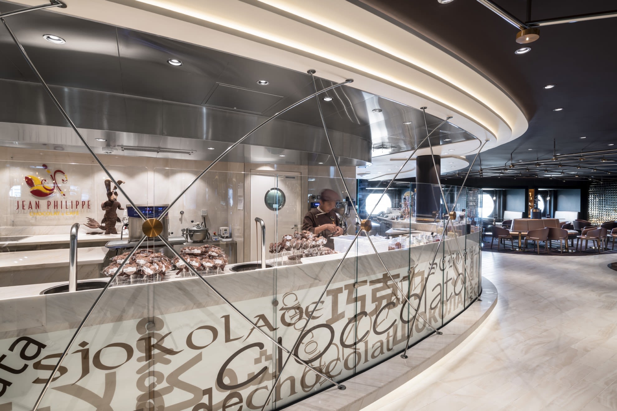 船内のいたるところに並ぶカフェやバー