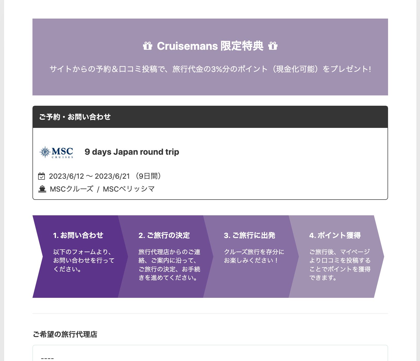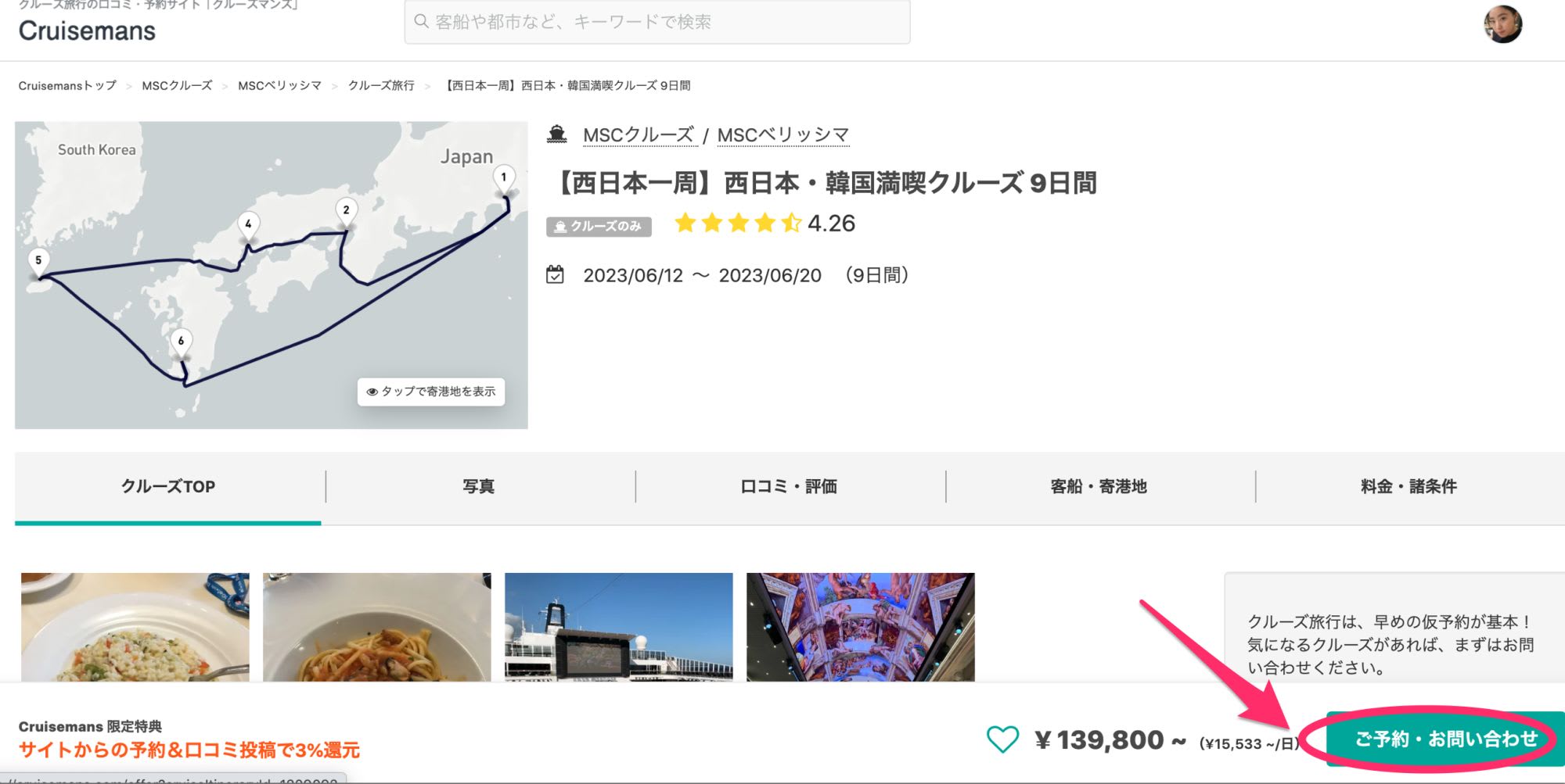 Cruisemansで予約をすると3%還元されます!