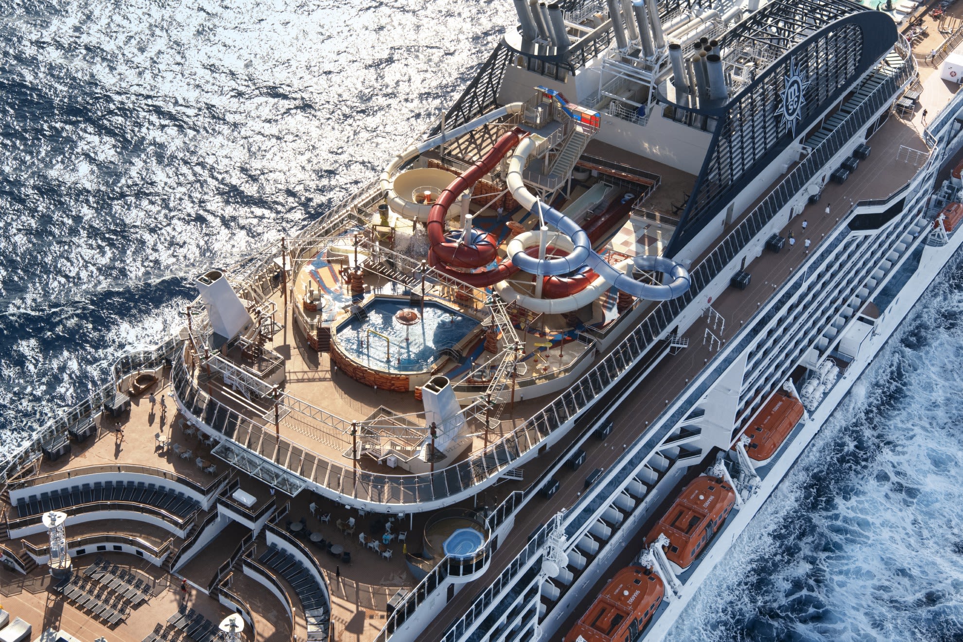 船上のプールがなんだかミニチュアに見えるほど