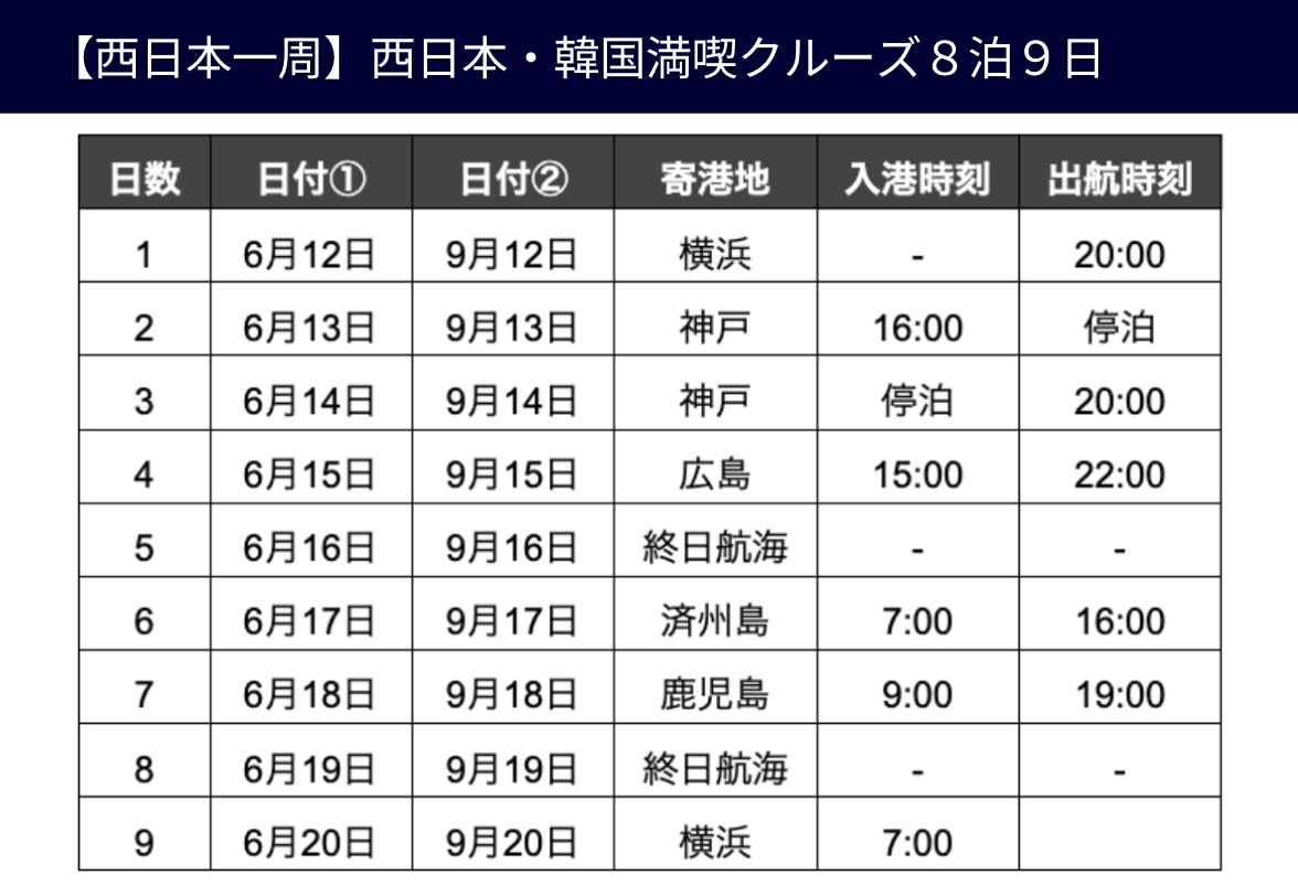〈クルーズ航程表はこちら〉