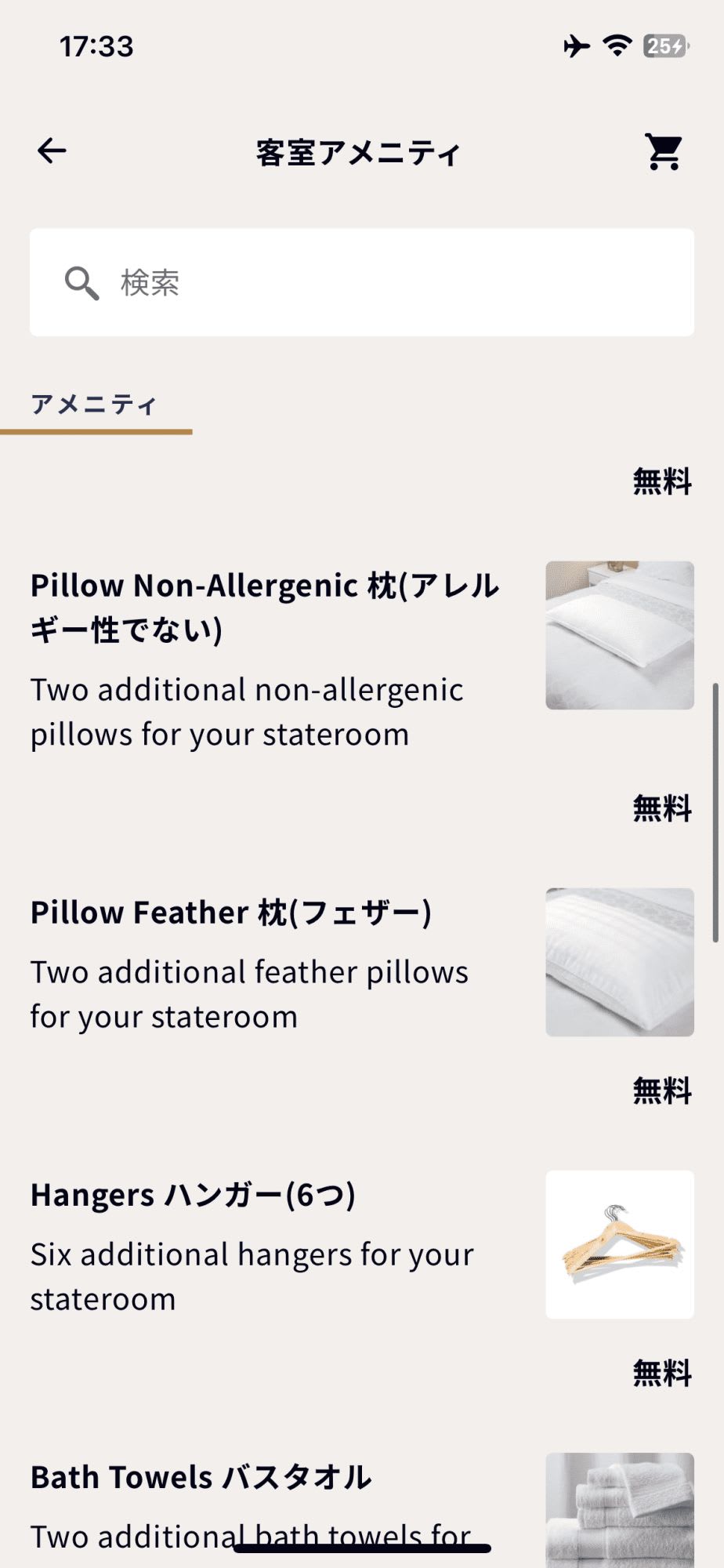 氷がほしい、ルームサービスを頼みたいということはもちろん、なんと、アプリを通してクルーへ質問を送ることもできますよ。