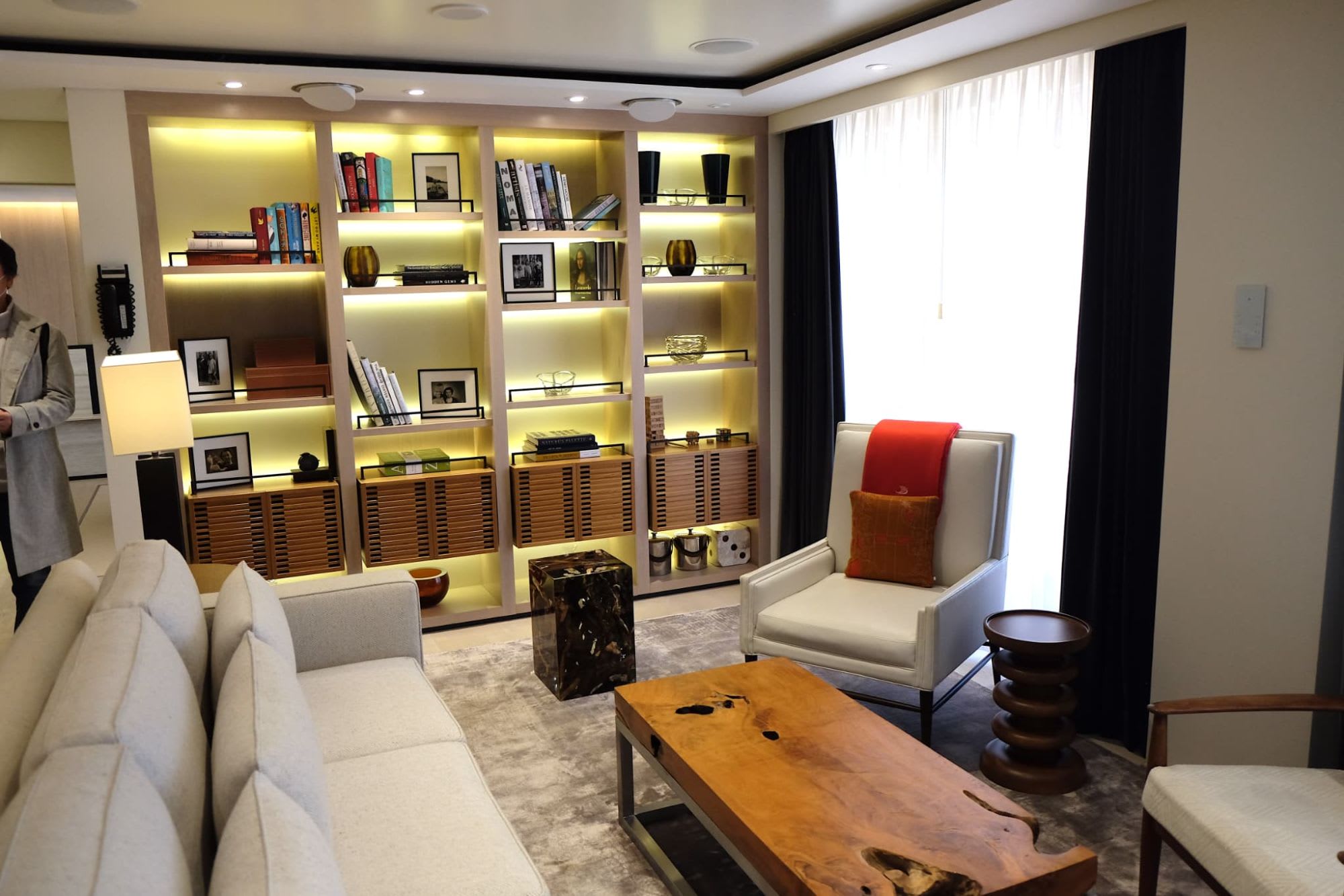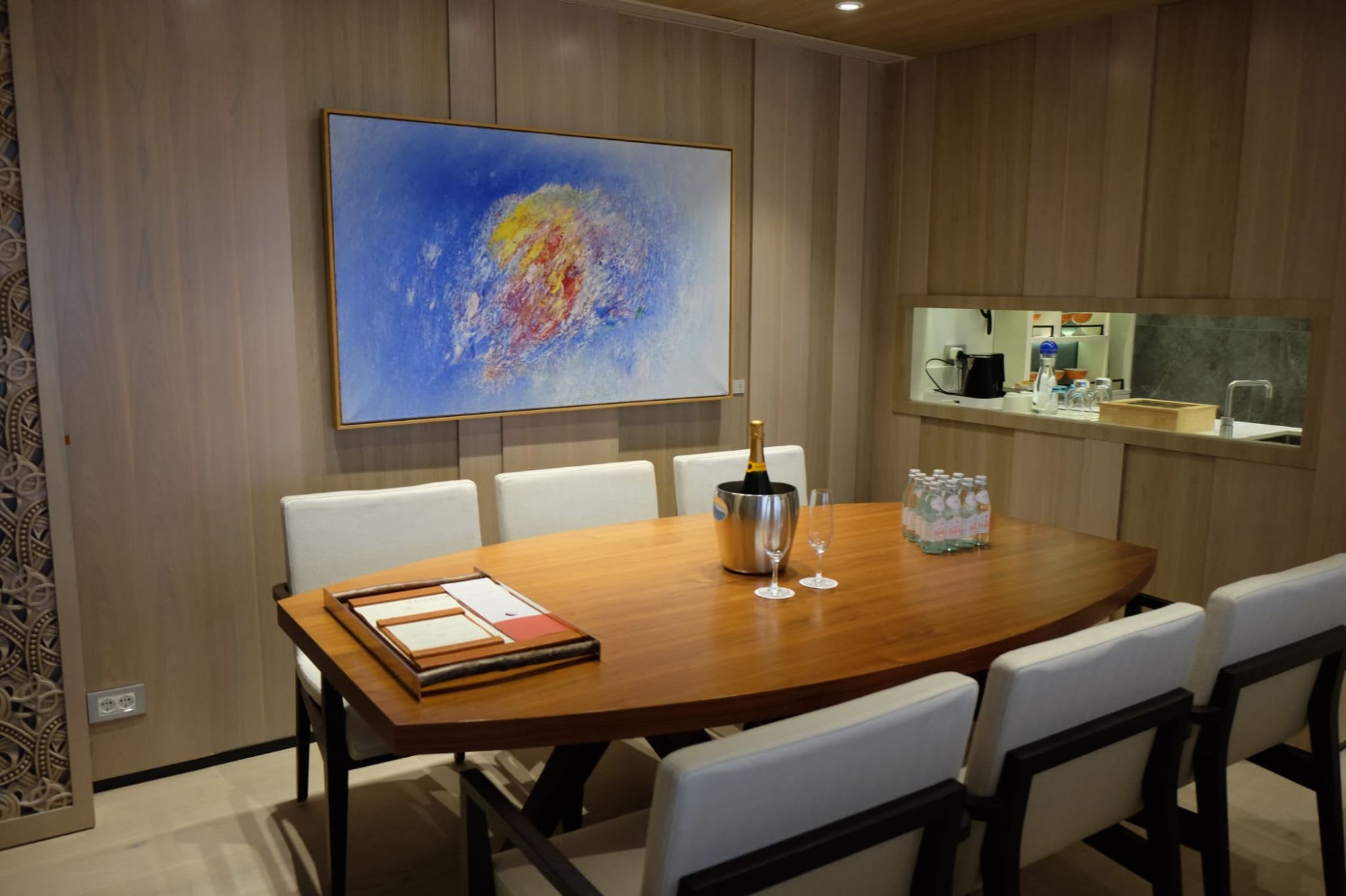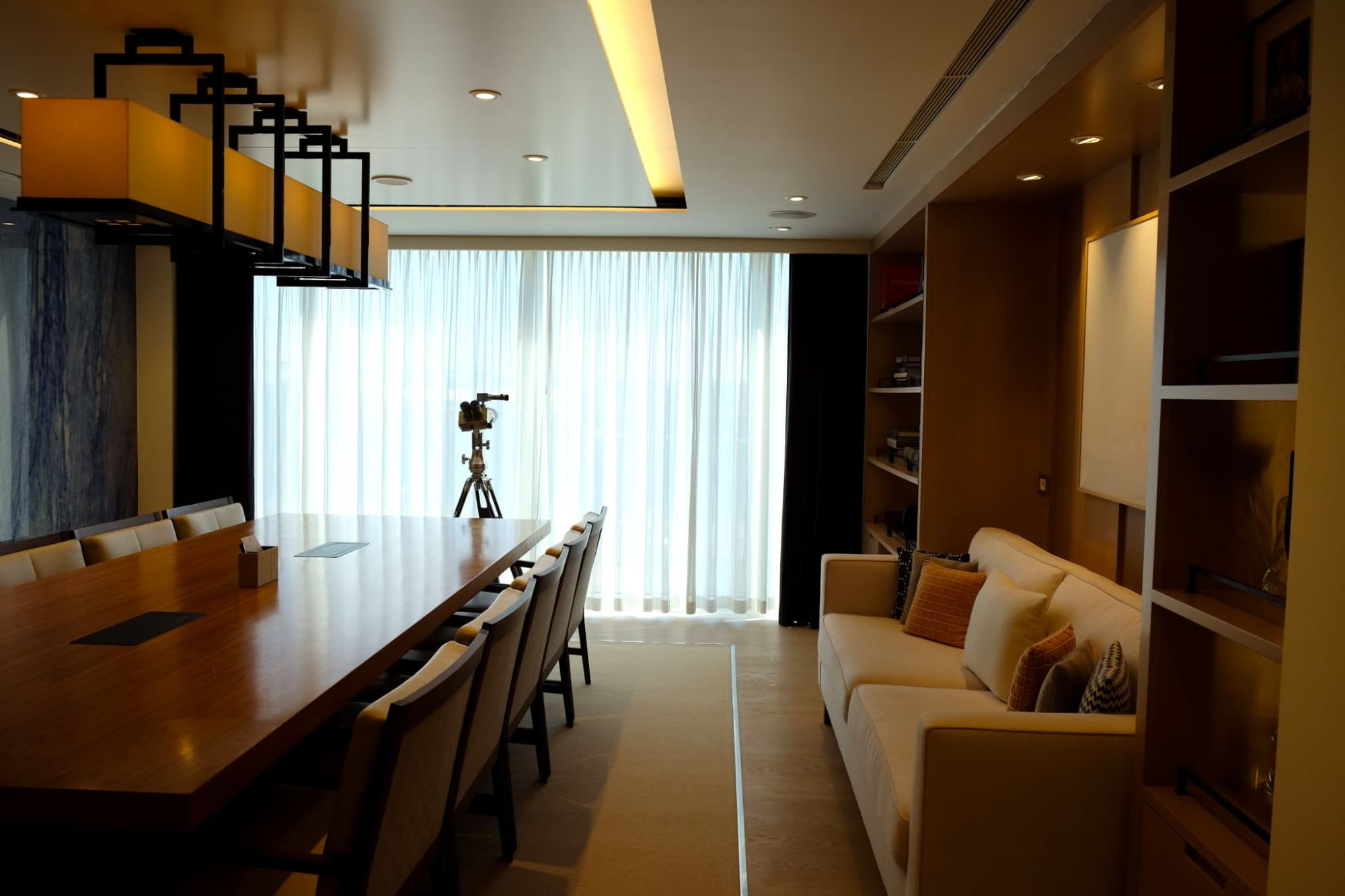 スイート客室を実際に見てみると、専用バルコニーや、部屋面積の規模感も去ることながら、専用のリビングスペースやインテリアの重厚感、客室内にプライベートサウナが設置された客室もあるなど、まさに外資系の高級ホテルという佇まいです。