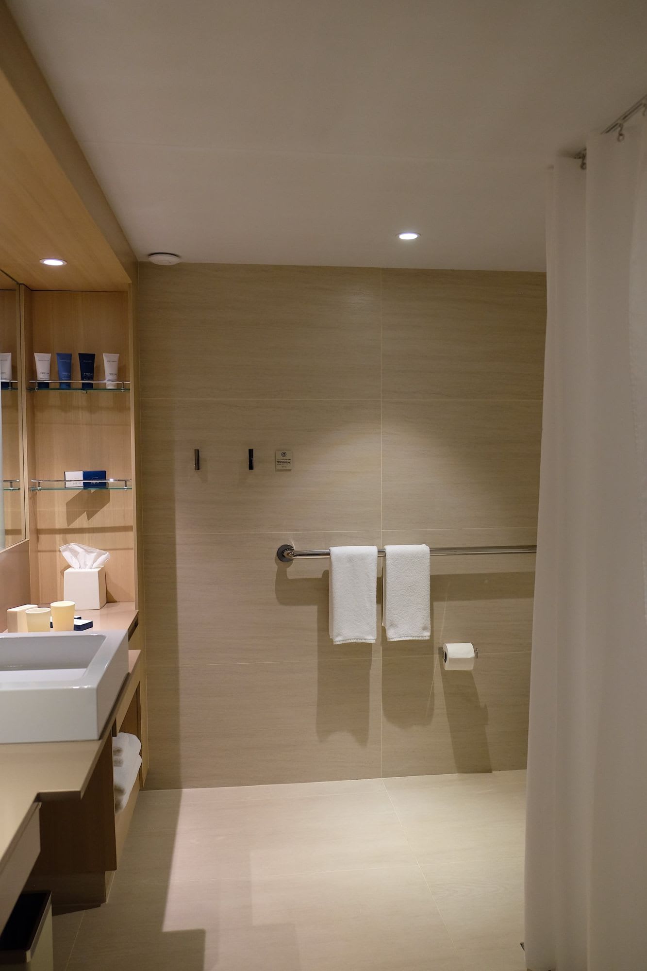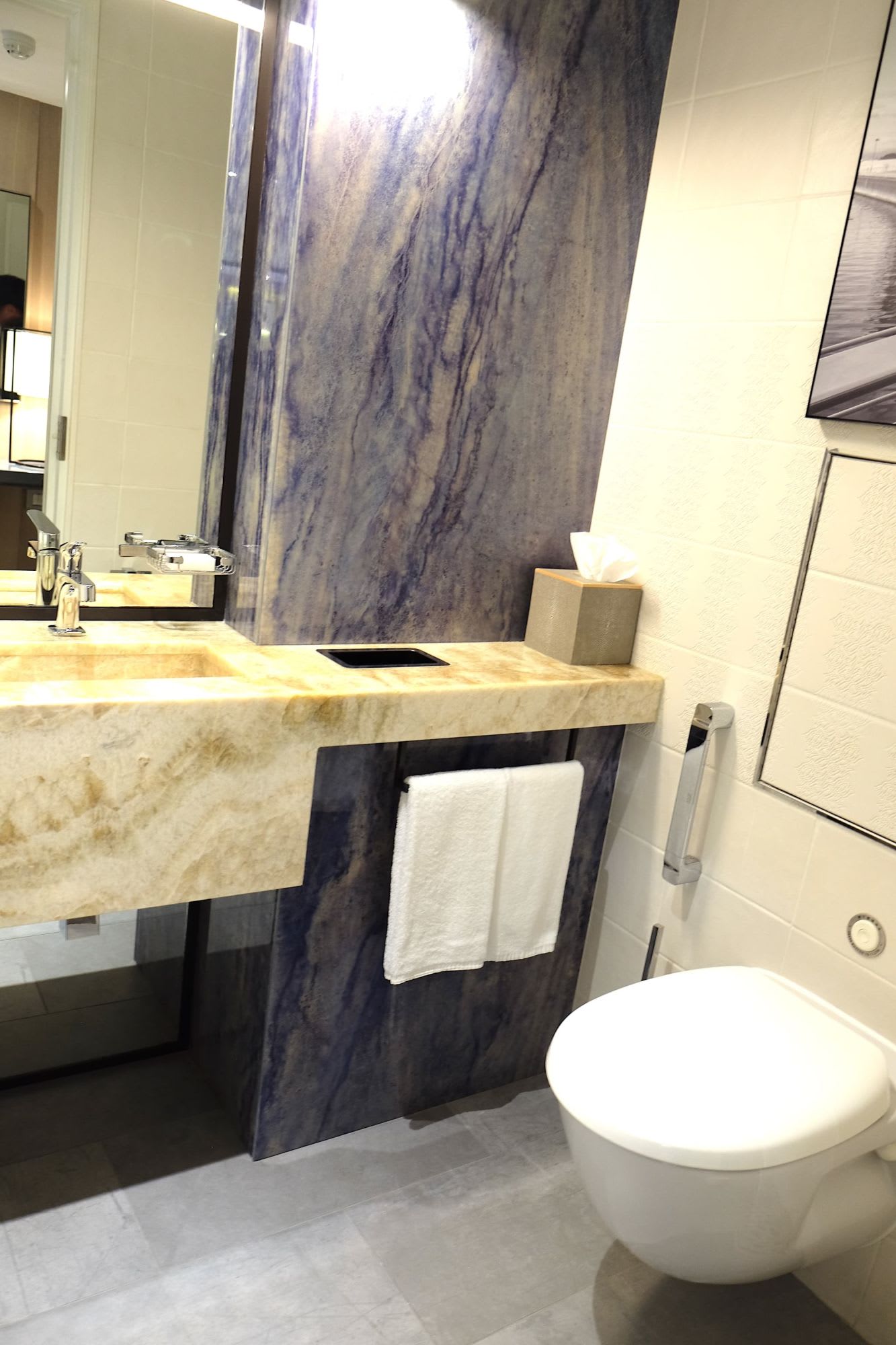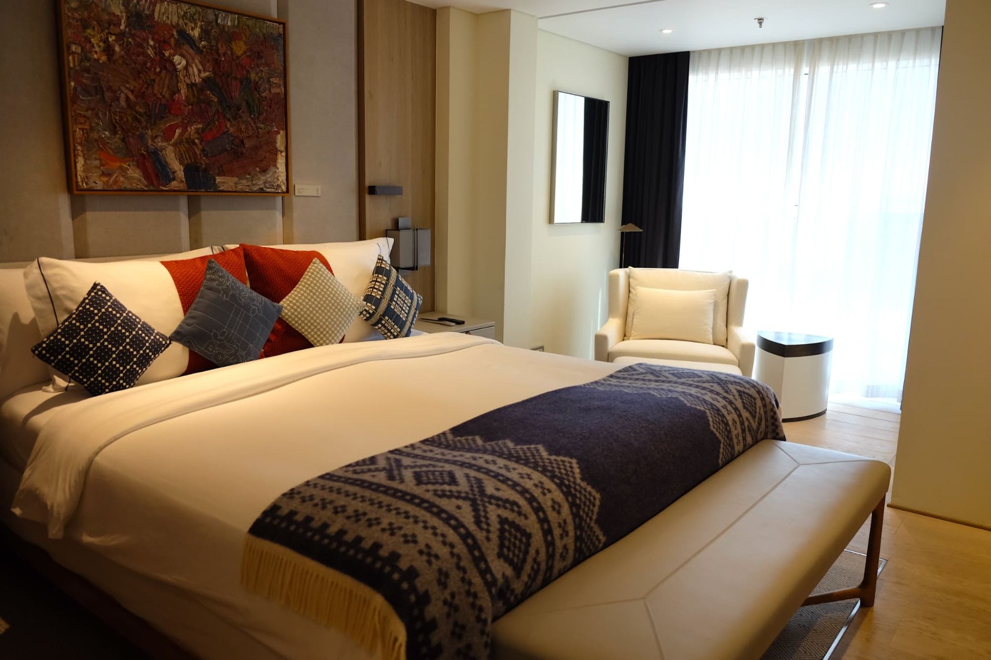 スイート客室を実際に見てみると、専用バルコニーや、部屋面積の規模感も去ることながら、専用のリビングスペースやインテリアの重厚感、客室内にプライベートサウナが設置された客室もあるなど、まさに外資系の高級ホテルという佇まいです。