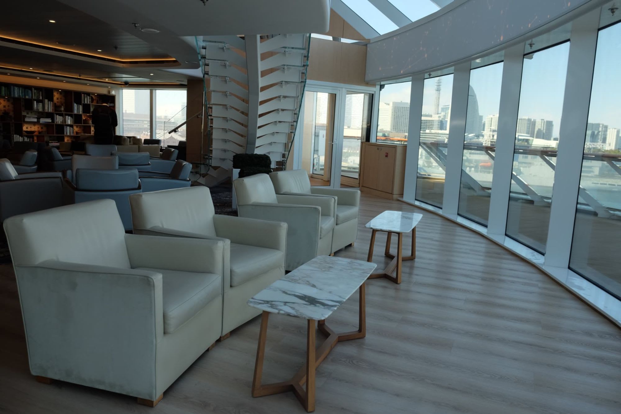 デッキ7•8を螺旋階段で結ばれている開放感あふれるラウンジ