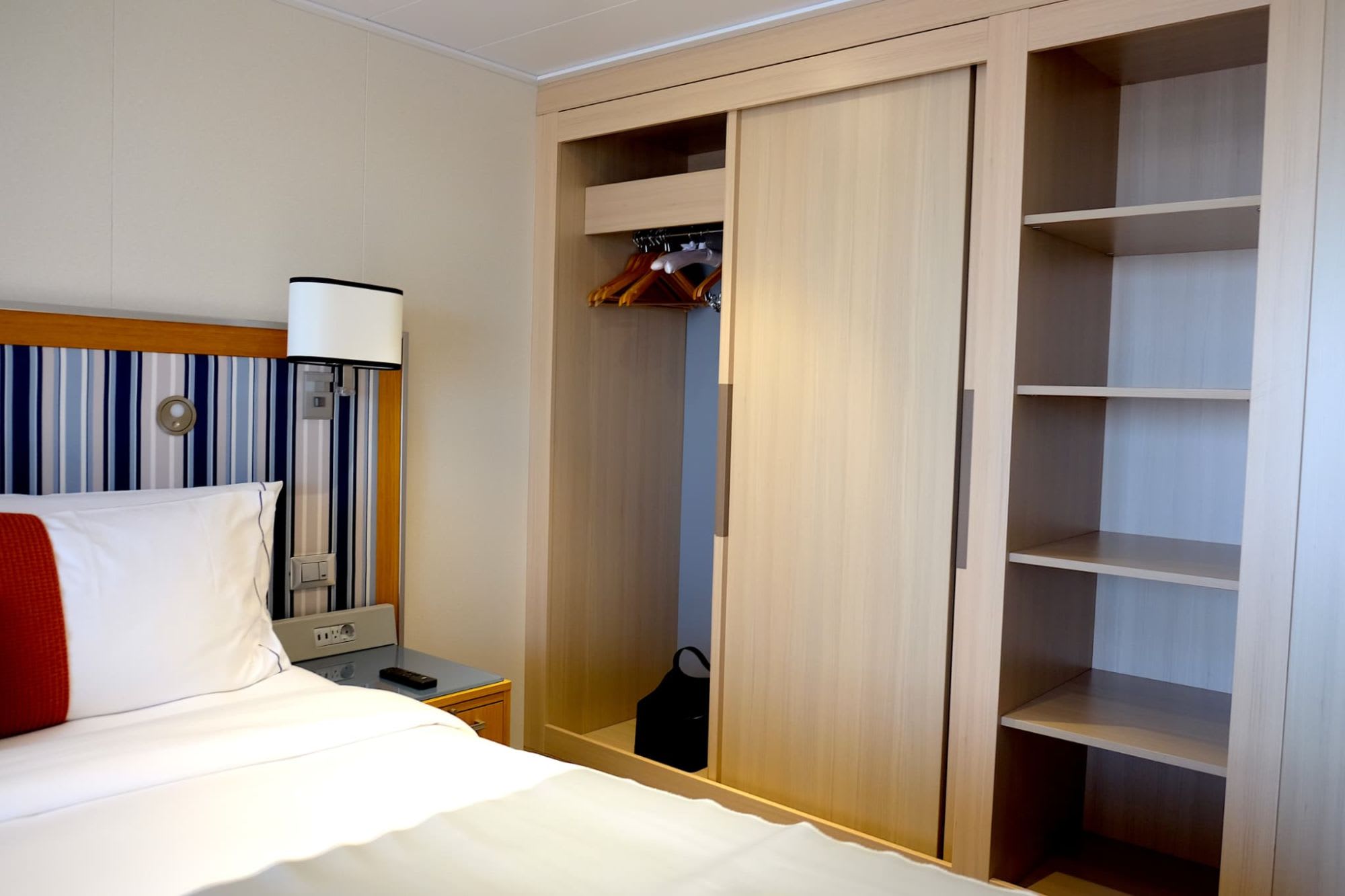 ベッド横のクローゼットもすっきり。ベッドヘッド近くにコンセントがあるのも嬉しい