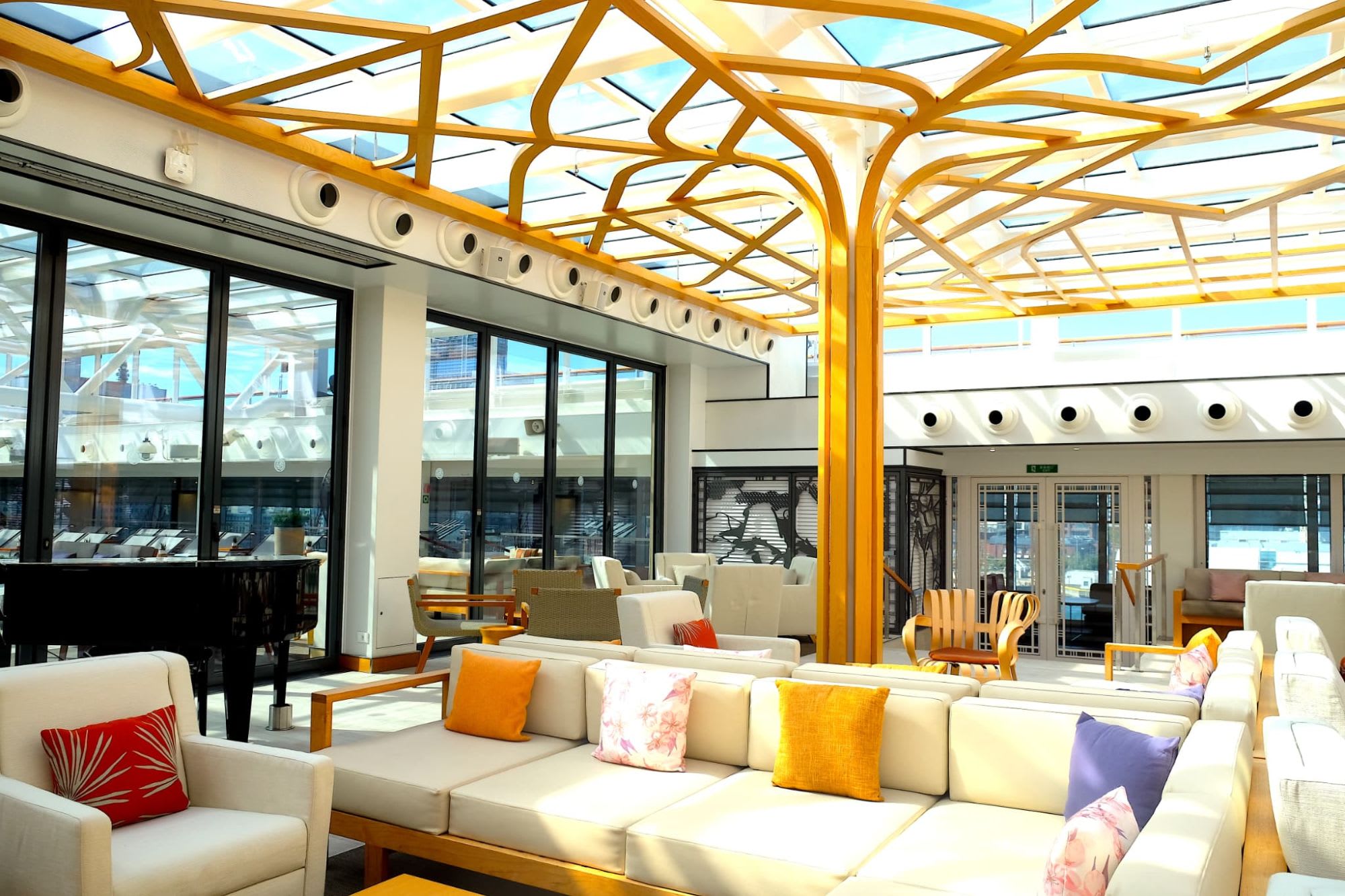 メインプールは船体中央に位置し、接するサンルーム的な施設である「ウィンターガーデン」はとても広々。自然光の中で明るく柔らかな印象で、ゆっくりとしたリラックス時間が過ごせそう。