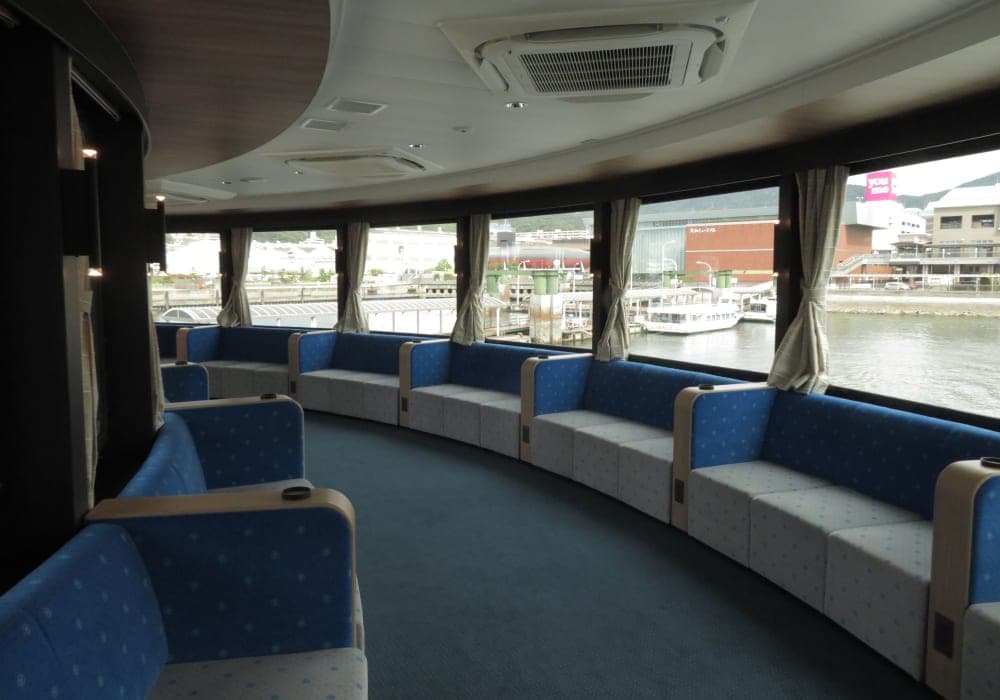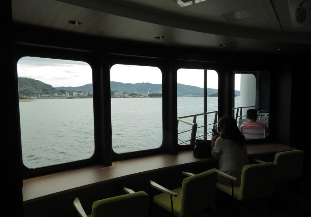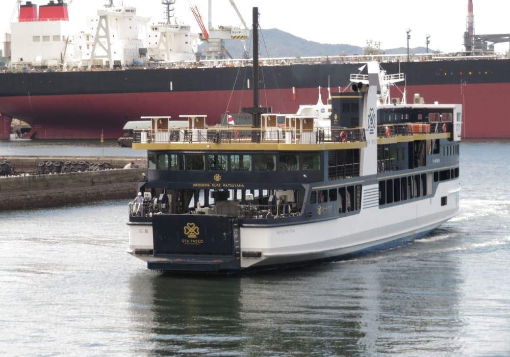 港から広島駅までの無料シャトルバスが出ていた。 便数もそれなりにあり、ツアー無しで十分楽しめた。