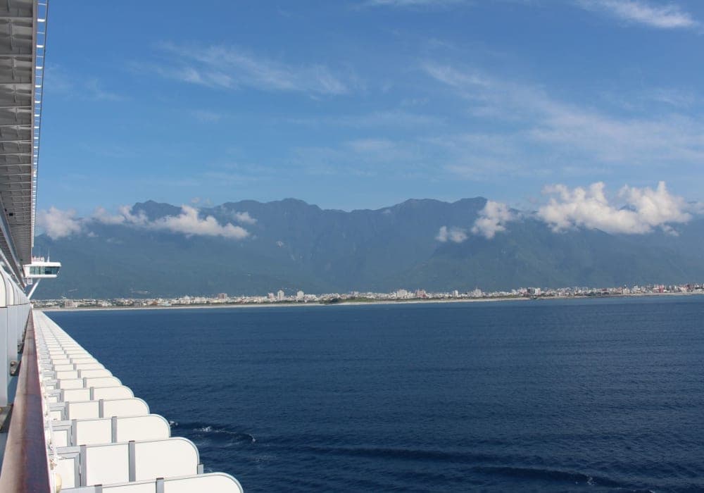 花蓮市街の背後には3000メートル級の山々が連なり、船上から見る陸地側の景観は日本の港とは一味違うものでした。波止場には40台位の観光バスが待機しており、オプショナルツアーで景勝地・太魯閣渓谷を訪れました。切り立った大理石の断崖絶壁や崖をくり貫いただけのトンネルが続く九曲洞は見応えがありました。途中、阿美文化村で先住民族アミ族の舞踊鑑賞し、大理石工場や宝石店を見物しました。