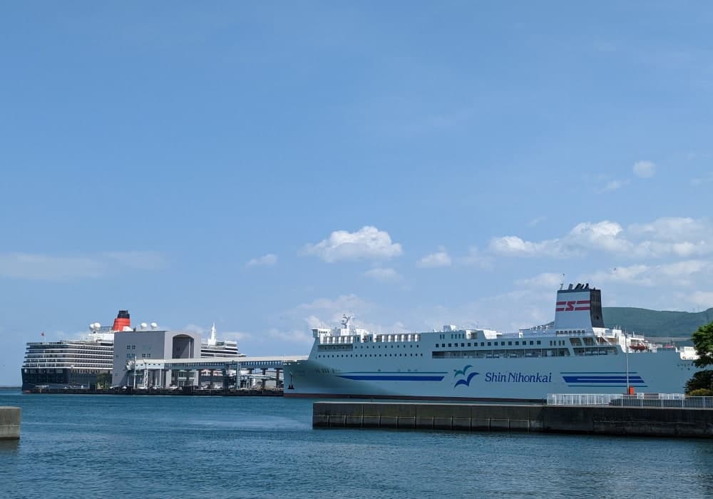 新千歳空港駅から快速エアポートに乗車し札幌駅で下車し、JRタワーホテル日航札幌のSKY-Jでランチ(事前予約)をとり集合時間に間に合うようにショッピング等に時間を使いました。小樽駅到着後は直ぐに駅前のシャトルバス乗り場から集合場所の小樽市民会館まで移動しました。COVID-19検査の結果が出るまでホールで90分ほど待機するのですがスクリーンに紹介ビデオを流されているだけでしたので退屈に感じた方が多かったようです。事前に船内新聞を配って頂けると待ち時間が楽しくなるのではないかと思いました。小樽帰港時は、台風11号の影響で出港時の第3号ふ頭からフェリーターミナルに近い勝納ふ頭に変更となったのでシャトルバスが小樽駅行きと小樽築港駅行きの2経路となり近い小樽築港行きのシャトルバスに乗車しました。