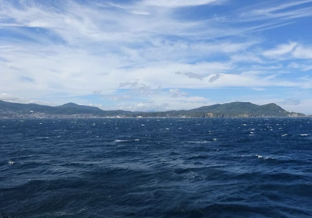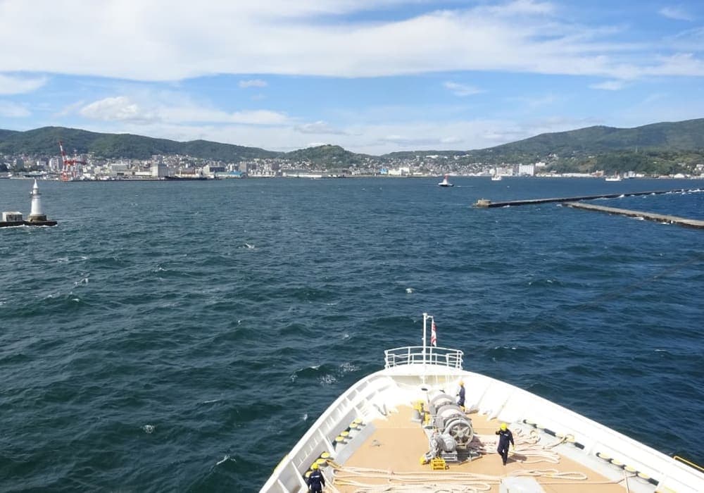 晴れ後曇り。勝納(かつない)埠頭に接岸。埠頭近くには大きなイオンのショッピングセンターがあった。札幌在住の友人が、車で黄金岬や海の色が綺麗な通称積丹ブルーの島武意(しまむい)海岸等積丹半島を案内してくれた。