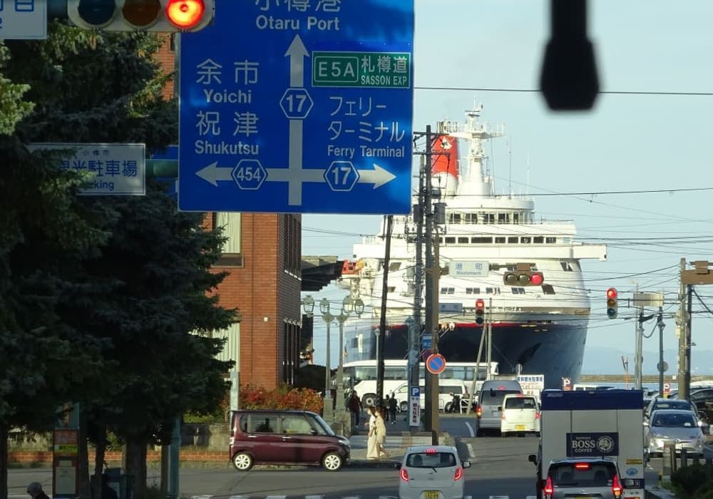 停泊地から徒歩圏内で街中に出ますのでそこから路線バスに乗って小樽貴賓館というところを訪ねました。にしん漁で財を成した人の邸宅を公開していたのですが、邸宅内はすべて写真撮影禁止のため、いつまでも具体的な感動を留めておく助けがなく、何らかの事情があるのかとは思いますが非常に残念です。 また、その後に小樽運河沿いの通りを散策しましたが、素敵な佇まいのお店が数多く並び、とても楽しい時間を過ごせました。ルタオ本店には展望台があり、そこから停泊中の飛鳥IIを含め街が一望できました。