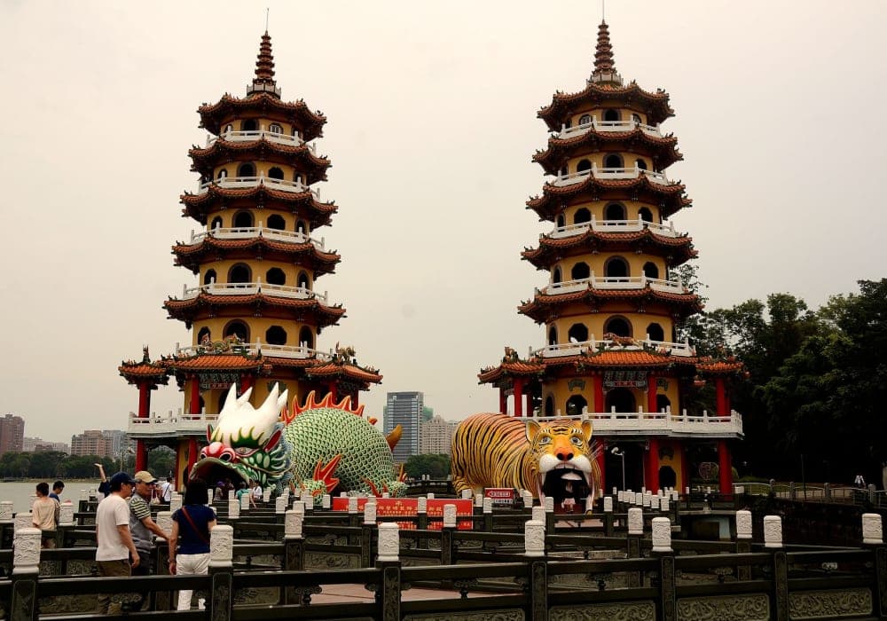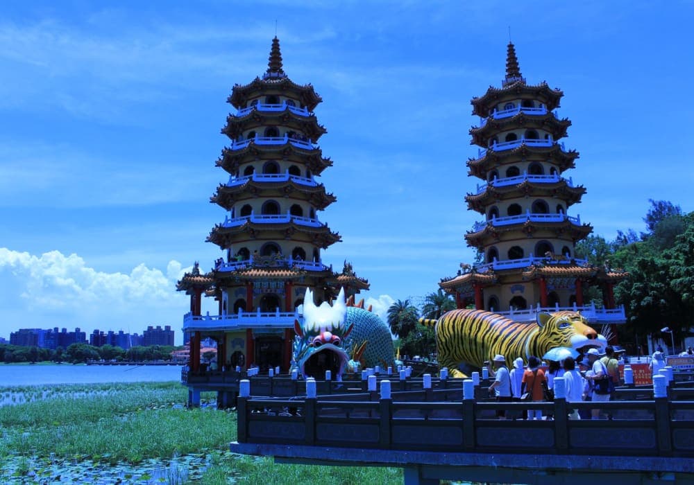 タクシーをチャーターして半日観光。思っていた以上にいい街でした。 台湾の中では1番大きい貿易港で、台北に次ぐ第二の都市。 歴史的には日本による統治時代もあり、農業、工業、街作りに大きな影響を与えています。 現在は加工貿易の工業団地や重化 学工業のコンビナートが集まる台湾随一の工業地帯となっています。高雄港は香港、シンガポール、上海に次ぐ台湾最大のコンテナ港で、台湾で消費する石油の大部分はここに集まっています。 ★蓮池漂風景区 台湾を代表する景勝地として知られた場所で、その奇抜な 造形と色彩は見所が多い景色でした。 名前にあるように蓮池に塔や廟が鮮やかに立ち並んでいましたが、残念ながら蓮の季節は終わっていたようで、蓮の花が咲いている様子は さぞかし美しい光景ではないかと思いました。 もう少し涼しい時に来て約5キロの湖のほとりを歩きたいものです。 ★絶品台湾料理 旅行雑誌に載っていた、日本人のオーナーシェフがやっている中華料理店を訪れました。 「龍抱湯包」(Longpao Tangbao)という店 で、小龍包、排骨麺、季節の野菜等どれを食べても絶品でした。 残念ながらここでも日本語が通じませんでしたが、日本語. 写真付きのメニューで問題なく注文ができました。漢字が同じ でも発音が全く違う台湾語、やはり写真付きメニューは強い味 方です。カラスミの小龍包は絶品でした。