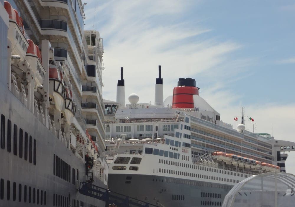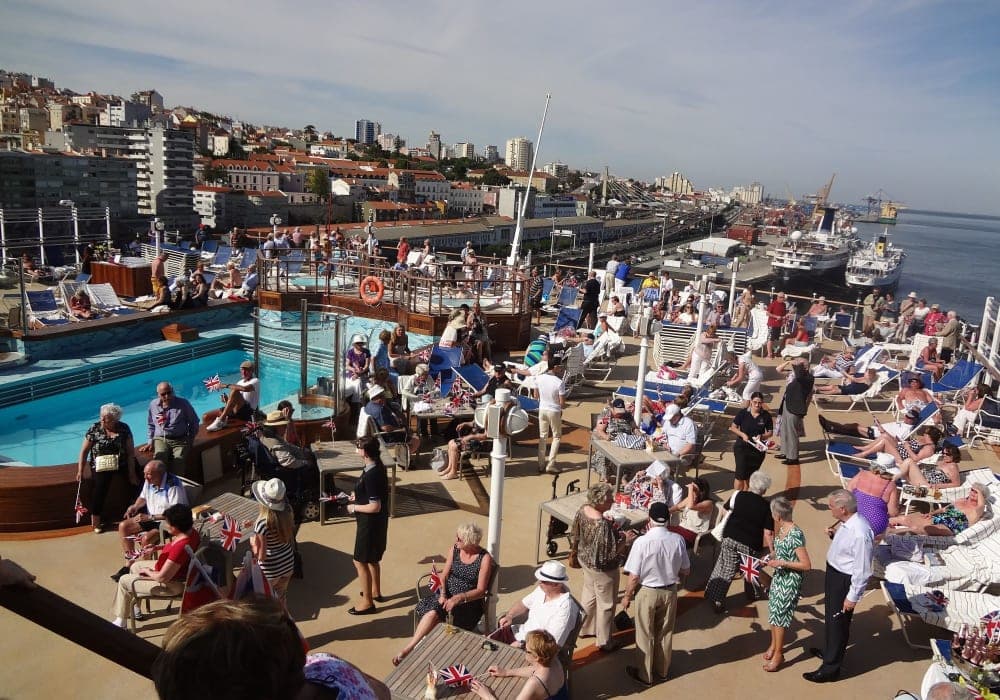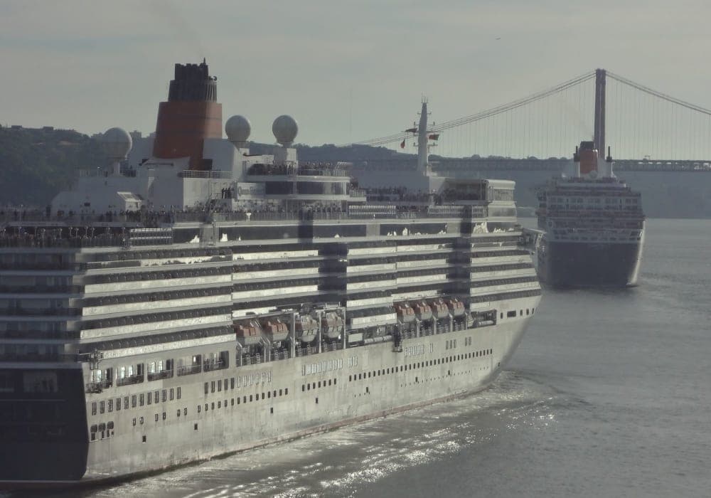〇街中を散策。坂道が多く高台に登ると街が一望できる。名物の路面電車も街中で映える。 〇なんと驚いたことにリスボン港には、クイーンメリー2、クイーンエリザベスが先着。彼女たちはそれぞれワールドクルーズの帰途。夕刻、スリークイーンズはメリー2、エリザベス、ビクトリアの順に一斉にリスボンを出港し、3日目の早朝、同時にサウザンプトンに入港。出港時、空には報道のヘリコプターが複数旋回し、多くの人が見送ってくれた。太西洋に出てからはフラッグシップのメリー2を挟んで両側にエリザベスとビクトリアが並走。それぞれの船では、「ゴッドセイブザクイーン」や「威風堂々」の音楽が流れ、互いの船の乗客が配られたユニオンジャクの小旗を振る光景も見られた。ビクトリアは急病人が発生したため途中フランスの港に立ち寄ったが、無事サウザンプトンに到着。ただ3隻が同時に到着したため港が混雑したのは言うまでもない。新聞やテレビでもニュースが流された。当然他の乗客は知っていたのだろうが、私達は何も知らなかったので嬉しいハプニングであった。