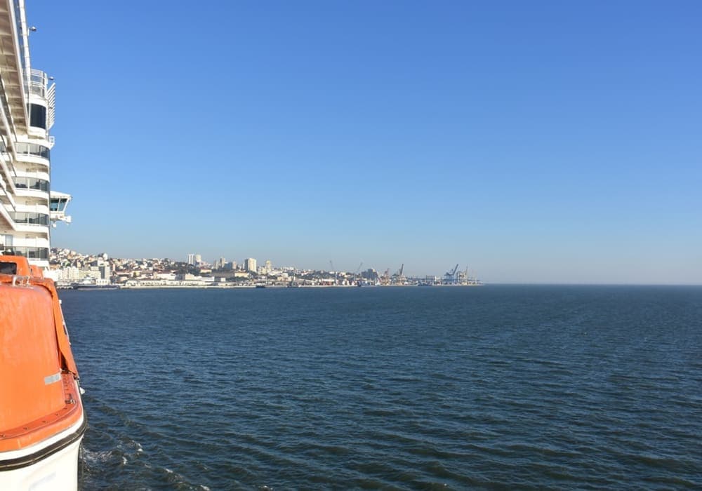 出港日前夜に到着し、予約したタクシーで中心部に向かい、ロシオ駅にあるホステルに宿泊しました。翌日は公共交通の1日券を購入し、ベレン地区までバスで移動。ベレンの塔と発見のモニュメントは外観のみ、ジェロニモス修道院は内部も見学しました。前回訪れたときより数倍観光客が増え、開館前からチケット購入の大行列。結局45分ほど並んでやっと中に入ることが出来ました。その後近くの有名な老舗カフェで焼きたてのエッグタルトを食べたあと、路面電車で中心部に戻り、ケーブルカー(グロリア線)に乗ってアルカンタラ展望台へ。サンジョルジェ城などのパノラマを眺望しました。その後ロシオ駅から地下鉄に乗り、サンタ・アポローニア駅へ。そこから歩いてすぐの港から、シルバー・クラウドに乗船しました。出港時は、徐々にブルーからピンクに変わっていく空の下、テージョ川をくだって4月25日橋をくぐり、やや遠くの岸に発見のモニュメントやベレンの塔を見ながら、ゆっくりとリスボンの町を離れました。