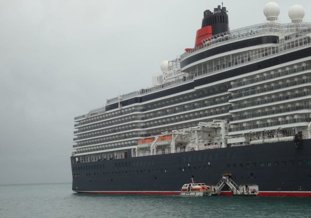 テンダーで上陸。サトウキビ畑が広がる景色を見ながらシャトルバス25分で街へ。終日小雨のため、ショッピングセンターや地元の市場の中を散策。