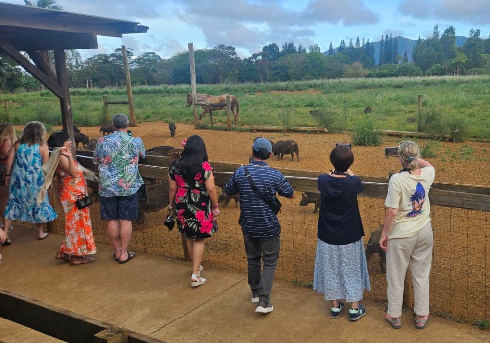 LUAU KALAMAKU & PLANTATION TRAIN 果樹園を電車で回るツアーです 猪や馬がいました ファイヤーダンスなど会場の中央ステージで見やすいと思います 内容としてはスパリゾートハワイアンズの方がすごいと思う