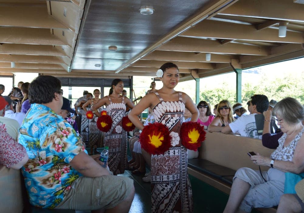 アラートン植物園の観光:森の中を歩いてハワイの自然を満喫。蚊がいるので虫よけ忘れずに。 ワイルワ川遊覧:ボートにのって遊覧。シダの洞窟があるところで下船し観光後船にもどる。船内でハワイアン音楽を演奏してくれる。