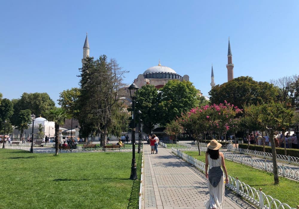 ターミナルに近くのトラムの駅から旧市街までトラムで移動。 トプカプ宮殿、アヤソフィア、ブルーモスク、国立考古学博物館、地下宮殿、グランバザールを観光。 トプカプ宮殿は必見。特にハレムの青の部屋が絢爛豪華。トプカプ宮殿は混んでいて入るのに時間がかかるので朝一で行くことをオススメする。また、宝物館も並んでいるので、一番に行くと良い。 隠れた名称としては、国立考古学博物館です。遺跡好きには必見です。全体で100万点近い発掘物があり、博物館内の庭や隅の方には遺跡が多数並べられている。見るべきは石棺です。想像できないくらい大きな大理石の石棺にこれでもかとレリーフが優美に繊細に彫られていて美しいです。