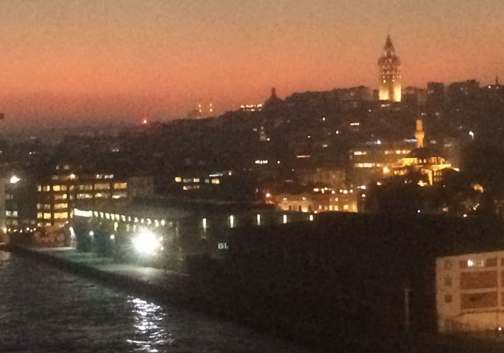 イスタンブールの港は町中にあるので、トラムヴァイで新市街、旧市街に簡単に行くことができます。 港周辺にいるタクシーは片言の英語で勧誘してきますが、料金がユーロで高め設定なのでトラムヴァイの利用がお薦め。 ガラタ橋、ガラタ塔は港から徒歩圏内です。 旧市街、新市街ともに見所が集中しているので観光しやすい都市です。