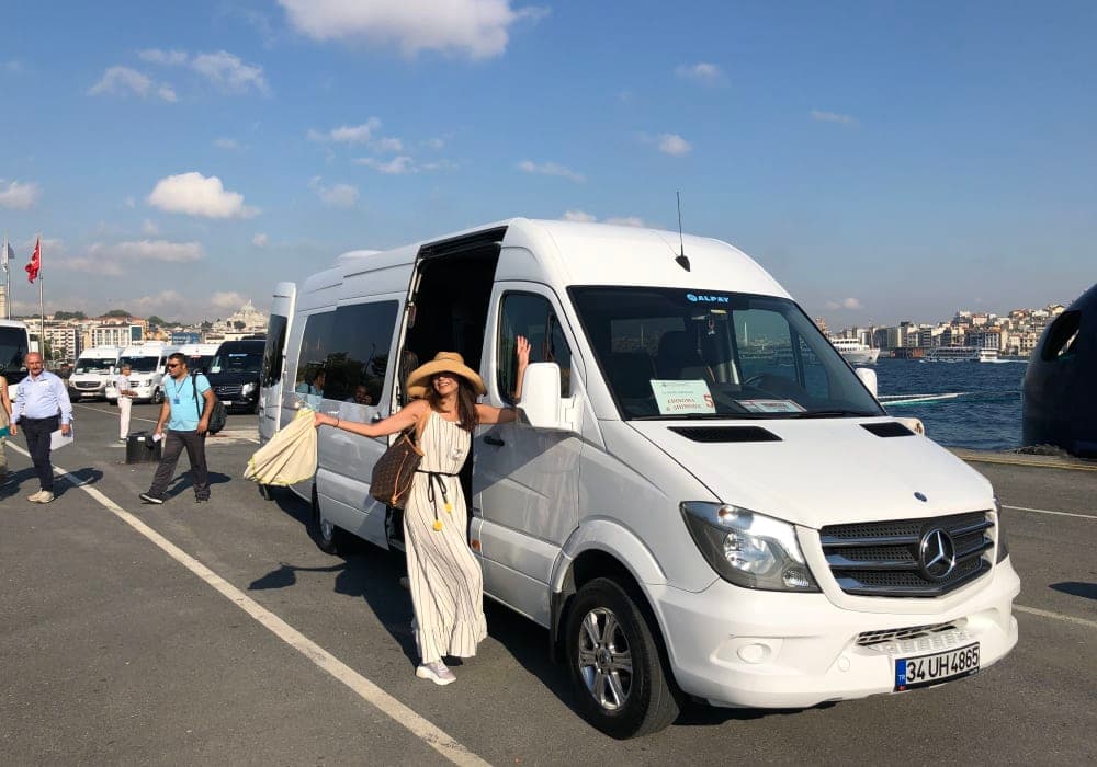 あらかじめ現地のツアー会社の空港送迎を予約しておきました。黄昏時、ブルーモスクやアヤソフィアなどを遠くに見ながらの出港風景はとても印象深かったです。
