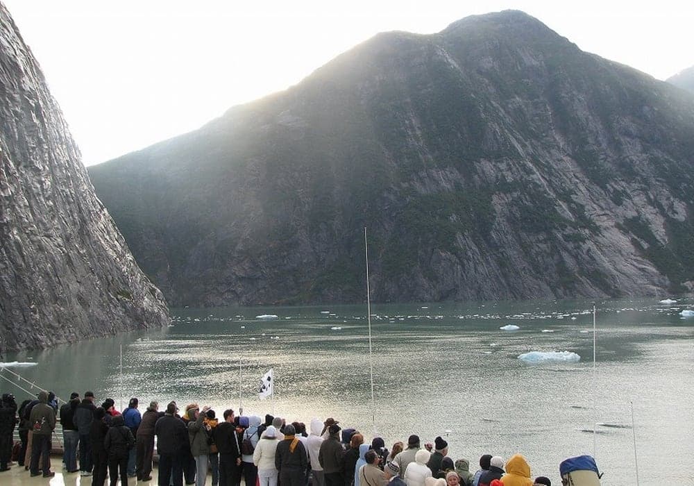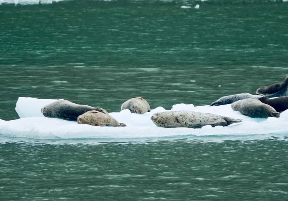 天気:曇り 申し込み時はグレーシャーベイに行く予定だったのですが、船会社の都合ということで、トレーシー・アーム・フィヨルドに変更となりました。このため船会社から割と良い金額のオンボードクレジットがつきました。 事前に調べたとこと、グレーシャーベイに比べてトレーシー・アーム・フィヨルドは規模が小さいことがわかっていましたので、予約番号を入手後すぐに「Tracy Arm Fjord & Glacier Explorer」というツアーを申し込みました。このツアーは人気で、かなり早い段階で満員になっていました。 結果からいえば、トレーシー・アーム・フィヨルドはとても楽しかった。確かに規模は小さいので、おそらくグレーシャーベイを見た方からすれば物足りないと思うのでしょうが、初めて見る氷河は圧倒的でたのしかったです。また、ツアー乗船後すぐに流れていた流氷の上に白頭鷲がいたり、氷河の前の流氷にたくさんのアシカを見ることができたりと楽しむことができました。一方でその他の動物(鯨、いるか、熊など)は確認できませんでした。ツアーの船の上ではスタッフの方が小さな流氷をとってきてくれ、流氷と一緒に記念写真を撮ることができます。 ツアーに関していえば、結構楽しかったのですが、申し込むほどではなかったと思います。というのは、ツアーの船の後ろをクルーズ船が追いかけてきてくれほぼ同じ景色を楽しむことができます。ツアーではクルーズ船より氷河に近い場所まで移動するのでそれなりに迫力はありますが、クルーズ船は氷河を楽しむために5階・6階の船首部分を特別に解放してくれ(通常はスタッフ専用だそうです)、ツアーの船より高い位置から見ることができるので、これでも十分かと思います。ツアーが一人300ドル位(二人で600ドル)するので、割高かと思います。 他の船で同様の対応なのかは不明ですので、事前に確認されると良いと思います。