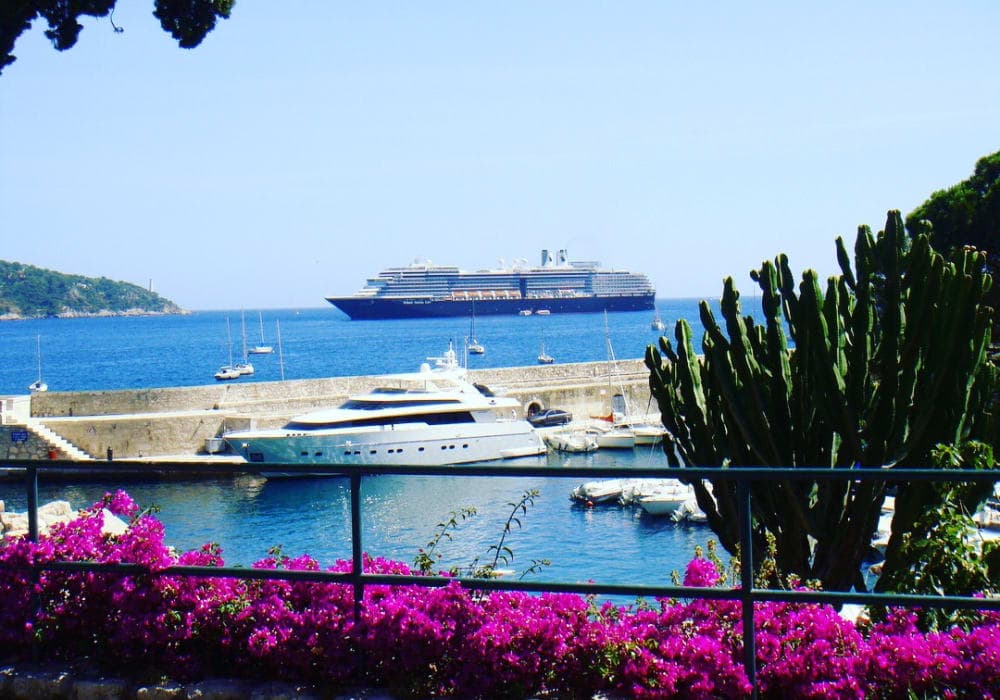 地中海クルーズの初寄港地ということで、ちょっと興奮。それまでの南太平洋とかの島とは違い、迷子になって戻れなかったらどうしようかと思った(ちょっと大げさ)。 実際、港近くの駅までは辿り着け、ニースまで行けそうな感じではあったが、万が一帰船できなかったらどうしよう、と考えて怖気づいてしまった。実際には充分行って帰れたと思う(多分)。 方針変更で、徒歩で近場を回るのみにしたが、それでも充分楽しめた。 道を登っていくと自然に高台に出て、湾に錨泊している船を見られたり、おしゃれなレストランやパン屋さんがある。普通のパン屋さんなのに、クロワッサンが絶品。さすがフランス。 テンダーが着く小さなクルーズターミナルに簡単な観光案内と無料WiFiとトイレがある。街中にも、公園近くのトイレとか、観光スポットのトイレとかがあり、探すのにはあまり苦労しなかった。 午後は、エズという山のような丘のようなところの最上部にある村へバスで。中腹の広場でバスを降りた後は、石畳の坂をちょっと登るが、中世ヨーロッパのような街並みは興味深い。頂上はサボテンだかの植物園になっていて、見晴らしは最高。