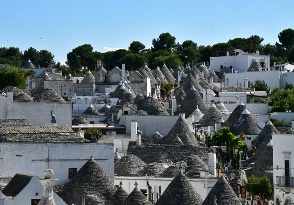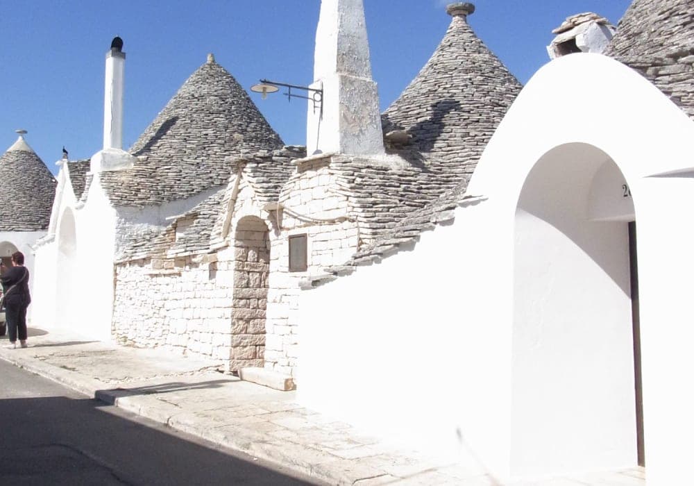 アルベルベッロのエクスカーションに参加。トゥルッリが小丘に立ち並ぶ景色は奇妙であるが白い壁と三角屋根が地中海の青空に映える。ただ、一般の観光写真に見られるこれらのトゥルッリは近代になり建て替えられたもので、現代化され電線が通っておりこれを避けて写真におさめるのは至難のわざ、反対側の丘には昔ながらの石で作られたトゥルッリが立ち並んでおり、雰囲気を味わいたいならこちらがオススメ。
