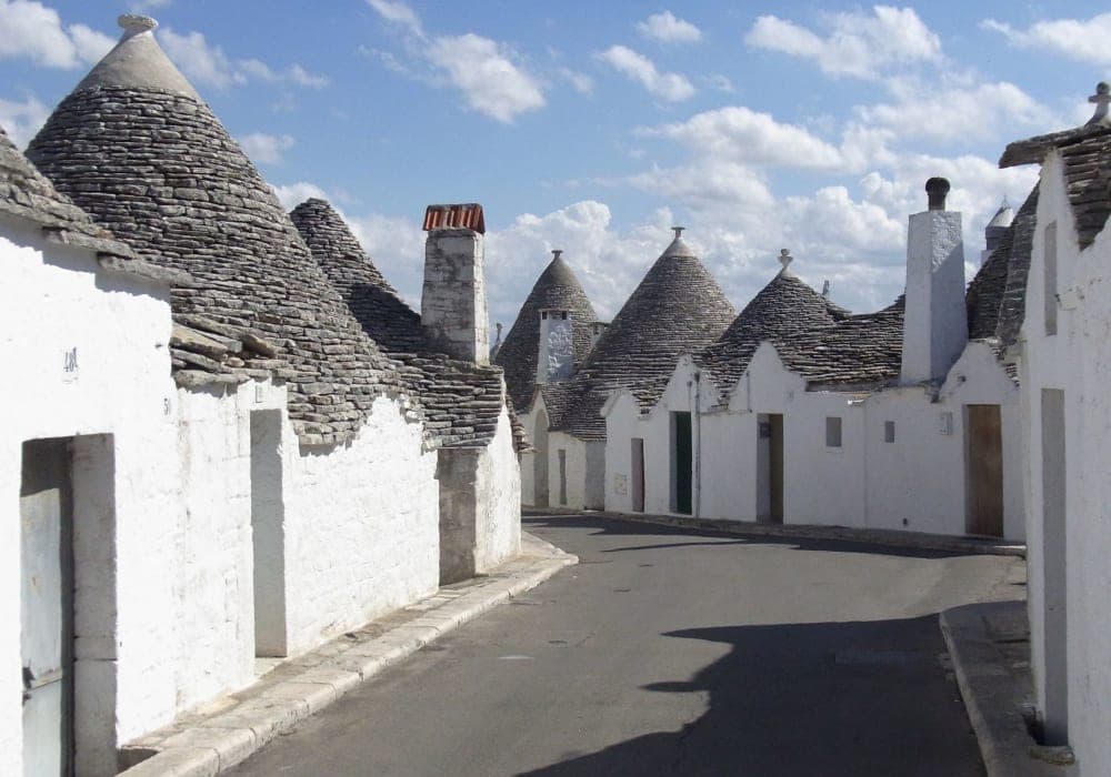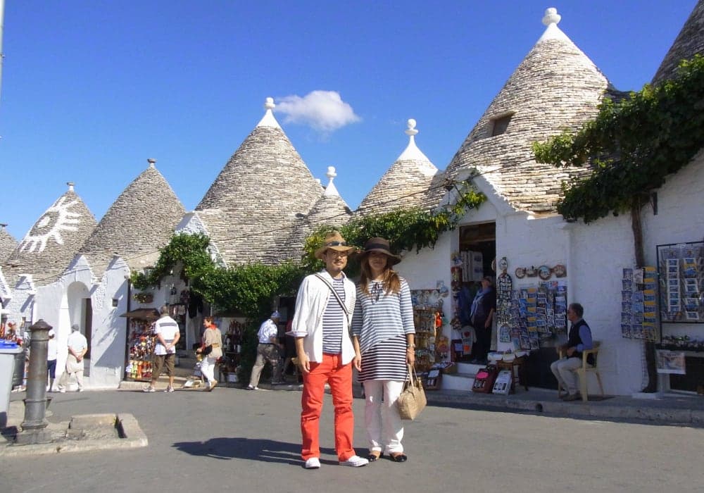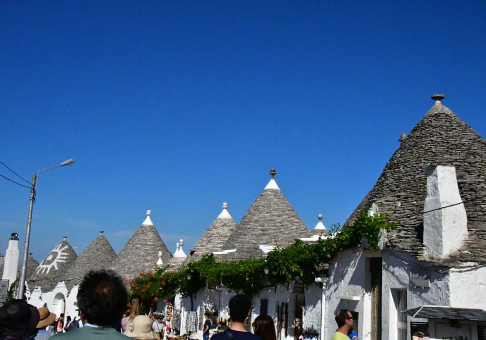 とんがり屋根の家が並ぶアルベロベッロまで船のツアーで行った。 2時間弱のドライブで到着後は小さい町を徒歩で回る。観光化された家並みの町だが見慣れぬ光景は一見の価値がある。