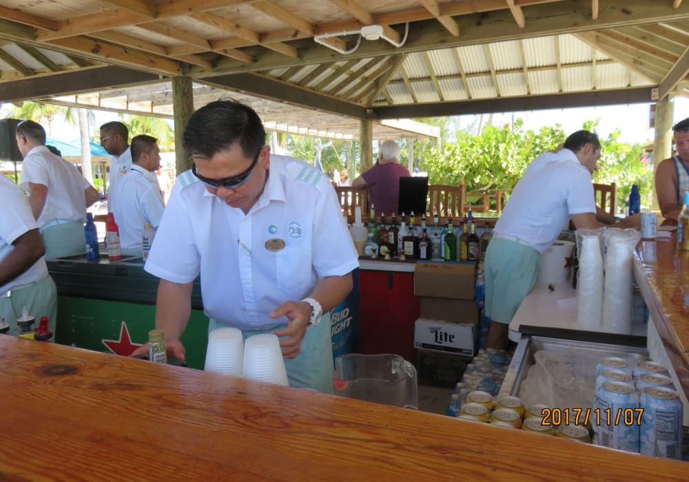 プリンセス・ケイはプリンセス所有の島です。ドリンクパッケージを利用してるとここでも飲み放題です。島にバーハウスがありテイクアウトもバーでも飲み続けられます。BBQのランチがありつまみにビールがすすみます。