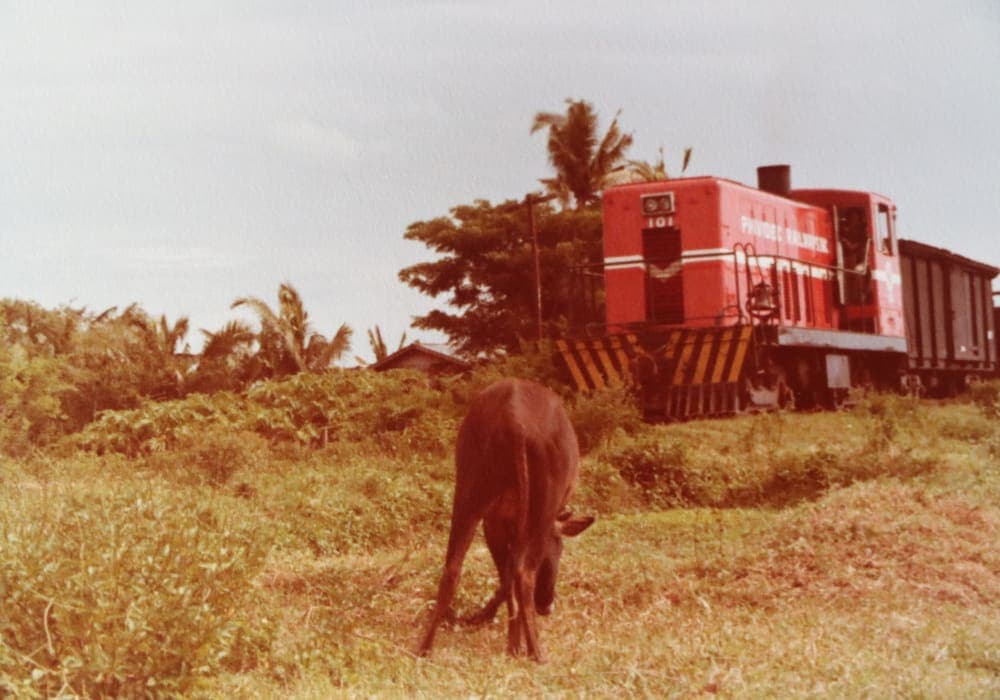 満足島の名前がイロイロという面白い名前のイロイロはフィリピンでは3番目に大きな都市。セブ島に比べ一段と田舎町。それ故町ゆく人も何となくのんびり。入港歓迎はセブ島でのひっそりとした入港風景とは大違いでまさに町あげての大歓迎。地元の小中学生くらいの人達の太鼓による演奏で始まり、続いて民族衣装を着けたフィリピン青年が岸壁いっぱいに勇壮な踊りを繰り広げてくれ心暖まりました。当時のフィリピンではルソン島とイロイロ島しか鉄道がなく、イロイロ市とロハス市を南北に結ぶ鉄道はイロイロ市からロハス市までは特急で5時間近くかかるので乗車するのは諦め、撮り鉄を決行。汽車がバッチリと撮影できそうな場所を探し、汽車を待つこと30分余り。果たしてやって来た汽車はSLではなくディーゼル特急でした。