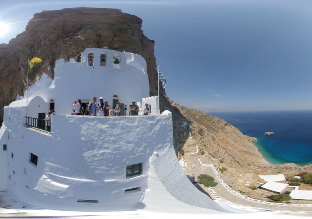 とても満足リュック ベンソン監督のグランブルーのロケ地で、僧院までバスを降りた後、239段の階段を上り上まで。強い日差しを遮りながらも、風遠しのよい構造になっており、上からの眺めは絶景でした。見学後、甘いお菓子と薬草酒をご馳走になり、中心村へ移動。穏やかなカフェでお茶をしながら過ごしました。