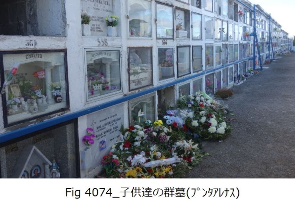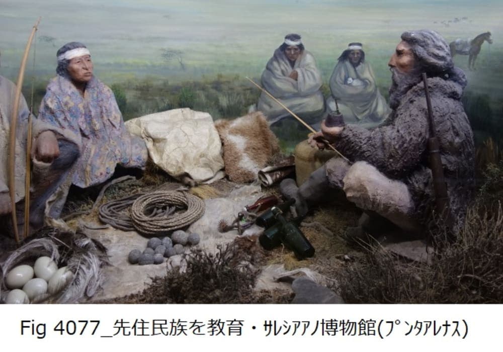 寄港地観光 City Drive & Museum:9:30am-12:30;$80【選定の理由】パタゴニアの人々はどのような風土で暮らしているのか興味があり、選びました。 寄港地観光の詳細、アクティビティ 【イクスカーション内容】 リメンバランス(思い出の)屋外博物館、市内墓地を訪問、クルツの丘にてマゼラン海峡を臨むプンタ アレナスの景観を楽しみました。サレシアノ博物館の後、マゼラン像を訪れました。 【感想】屋外博物館には街の建設のために19世紀の終わりに輸入された数々の蒸気機関が展示されていました。まだ日本は明治維新を終えて間もない頃で、ヨーロッパからはるばるマゼラン海峡を越えて当時の最新鋭のマシンが運び込まれたことは驚きです。市内墓地にはブエノスアイレスのレコレータ墓地で見た立派な納骨堂が有りました。墓地の奥に子供達の納骨堂を積み上げて作った言わば納骨マンションがあり、異様な感じがしました。納骨堂それぞれには亡くなった子供たちのために玩具や人形を入れ、あの世では幸せに暮らすようにと願いが込められているかのようでした。プンタ アレナスで一番高いクルツの丘からは、青みがかった太陽光の下、マゼラン海峡を臨むプンタ アレナスの家々がくっきりと見えました。サレシアノ博物館はイタリアの修道会(サレジオ会)が運営しており、先住民族のジオラマアも宣教師達が如何にして教育し野蛮な生活から抜け出させることに心血を注いだのか、力点を置き展示しています。パタゴニアの先住民族の物々交換や祭り・儀式といったものに私達は興味がありましたが、そうしたものは宣教師たちによって否定・抹殺されてしまったのではないかという気がしました。ウルトラマンに出てくるような異様な姿の先住民族の儀式での扮装は皮肉にも博物館ショップで土産物として売られていました。マゼラン像はプラザ広場にありマゼランの下には先住民がまるで抑圧されているかのようでした。実際には白人が持ち込んだ感染症によって、先住民族はほとんど全滅してしまったとは、本当にひどい話です。