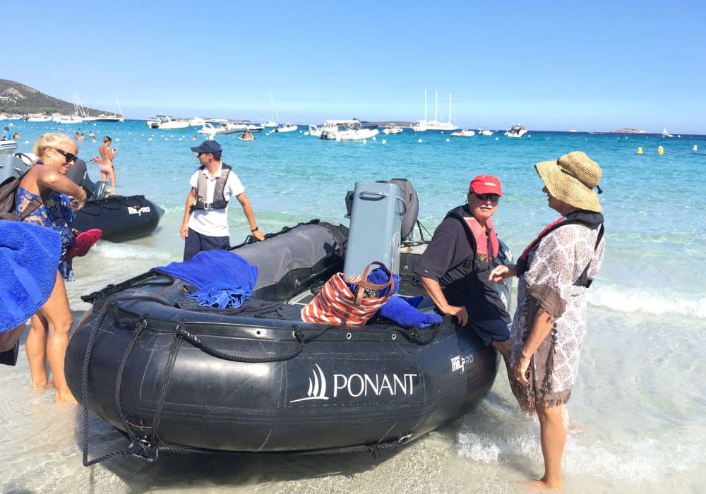 下船場所から中心地へは歩いて15分程度です。 ナポレオンの島というとこでナポレオンに関する所を中心に徒歩で色々観光しました。 下船場所から歩いて、15分ほどの所にビーチがあり、皆さんはそれが目当てなようでした。 紺碧のきれいなビーチでした。