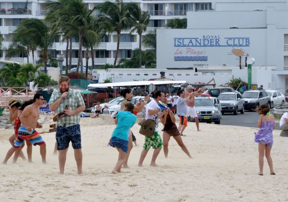 ジェット機の離発着で有名なマホビーチ行きのタクシーは港降りたタクシー乗り場に有るのですぐに分かります。 ビーチは暑いので帽子必須。水着で出掛けてあっちで泳いでそのままで帰ってくるのが現地っぽくっていいです。