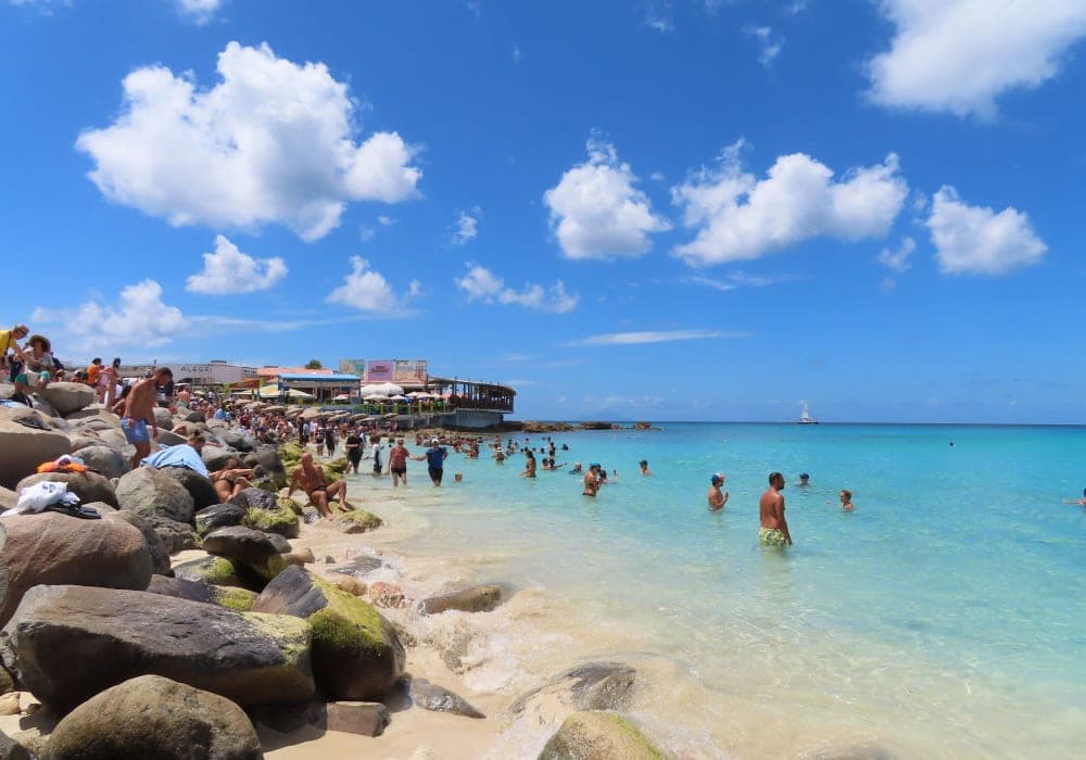 セントマーチンはオランダ領、フランス領の二つに分かれておりさらに船で30分も乗ればイギリス領アンギラにも行くことができるという3か国を楽しむことのできる面白い島だ。 私はまずアンギラに行くために港からタクシーに乗り30分でフランス側のマリゴへここから船に乗りアンギラへ向かった。ここでの滞在時間は2時間ほど、まず首都のバレーへ。通りが一本と店が数件あるだけの何もない首都でアンギラグッズを購入、その後世界屈指の透明度を誇ることで有名なビーチへ写真を撮り再び港へ戻った。 港から再びボートに乗り30分マリゴの街を観光、ここにはマルシェがありお土産物の小物などが売られており見ているだけでも楽しい、高台の城塞あとを見学し次の目的地マホべイビーチへ ここはビーチよりも空港の滑走路のすぐ脇という立地から飛行機の着陸時に真上を飛行機が飛ぶことで有名な観光名所でビーチにはバーがり多くの観光客がカメラを片手に着陸を待ち構えていた。 そしてさいごにオランダ側船が停泊しているグレートベイへ戻り海岸沿いを散策、観光客の向けの店が並び今までの島で一番の賑わいであった。 この町ではタクシーのほか格安の乗り合いバスなども簡単に利用できるのでぜひ自力での観光をお勧めしたい。