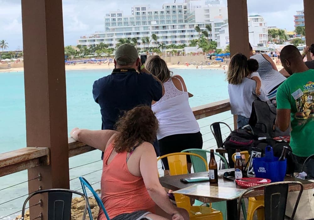 港でマホビーチまで行くタクシー($18/往復)に乗り、マホビーチへ。 ビーチにあるバーで離着陸を堪能。