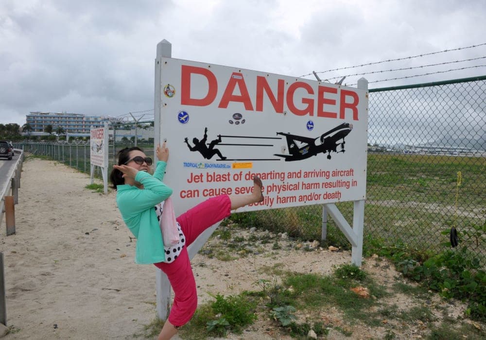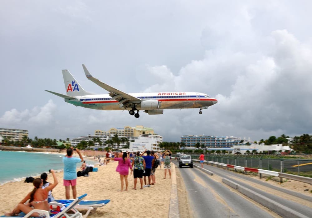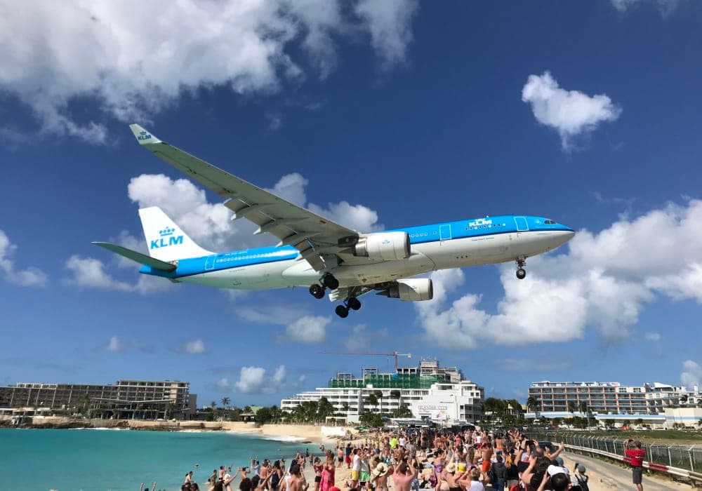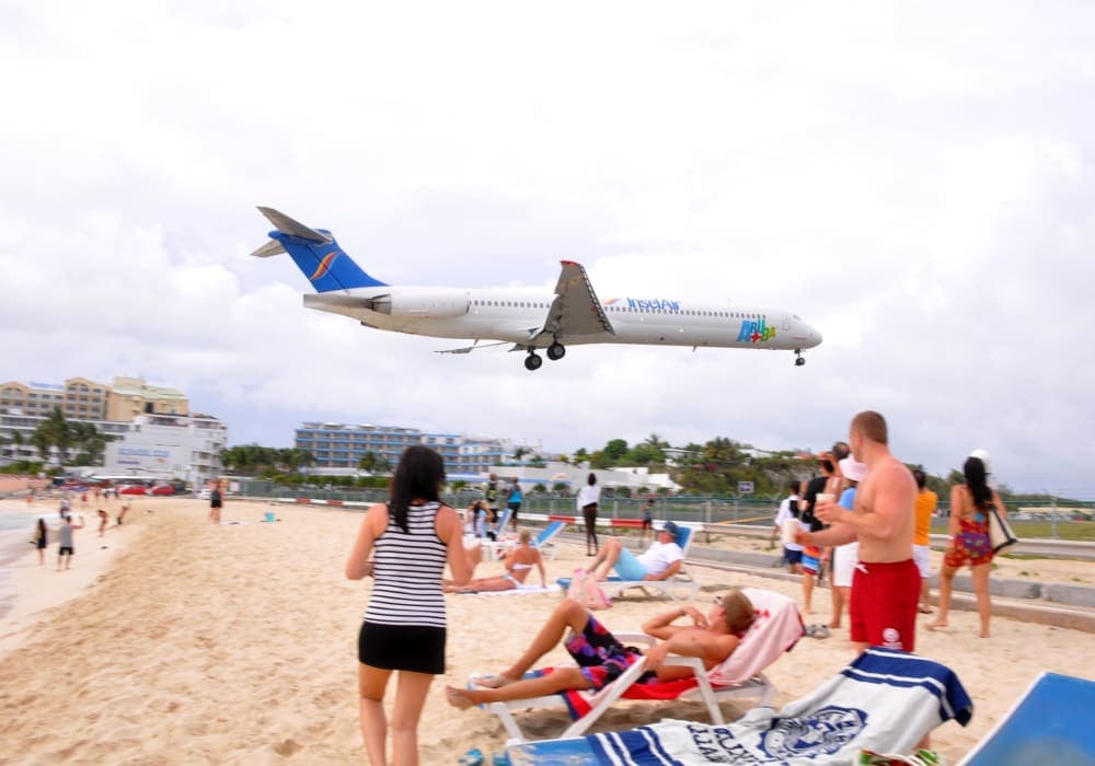 飛行機が低空でビーチの上を飛ぶマホビーチに行きました 実際に行ってみると着陸より 離陸のジェット機のエンジンからでる暑い熱気で30m位飛ばされました 後日聞いた話では車も横転したりするそうです