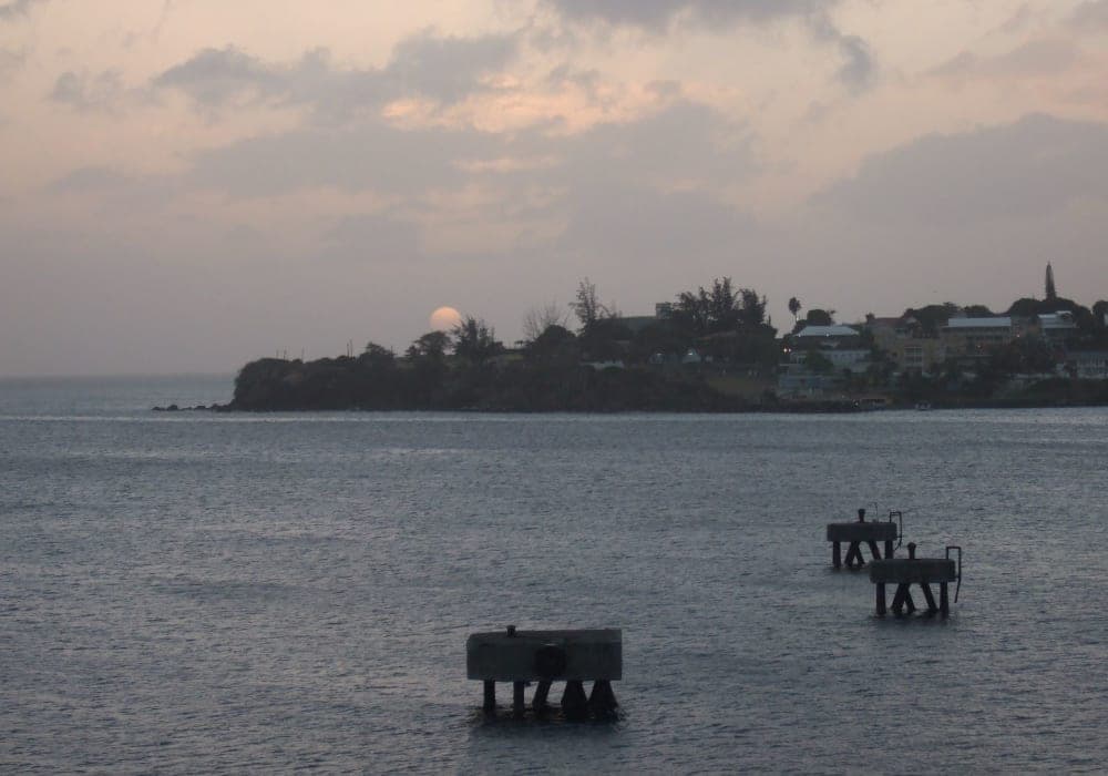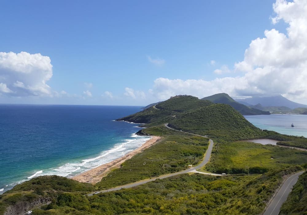 港を出たところで見つけた島内観光のバス。 どこに行くのか聞いたら写真の一覧を見せられたもののイマイチよくわからない。 とりあえず島の見所を回るそうです。 $20/1人、2時間コースでした。 さっそく乗ってみると、このバスツアーがなかなか面白い!!! 徒歩での散策じゃ行けないような所に連れて行ってもらえるのでとってもお得でした。 特にセントキッツ島の半島が見渡せる山の上からの眺めは右側はカリブ海、左側は大西洋。 なかなか見ることができない景色でした。