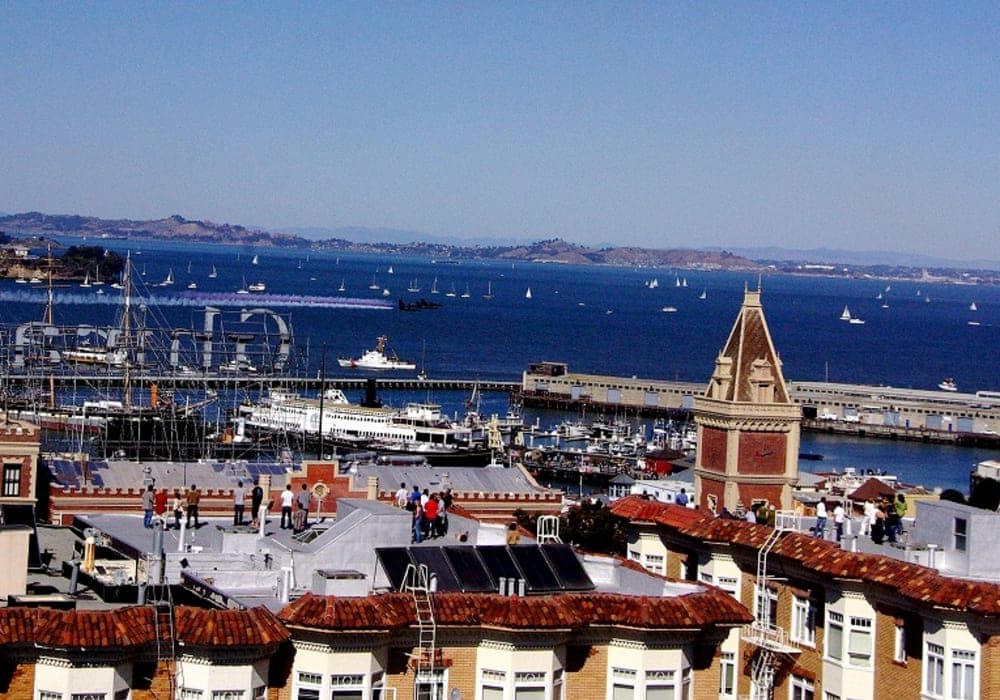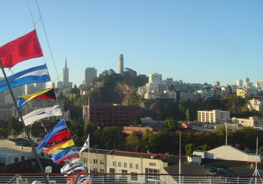 アメリカに入っての最初の寄港地ということで、下船前に乗客全員の入国審査があった。 サンフランシスコは流石に大都市。ケーブルカーで港から終点まで行くと市街で、デパートや高級店何でもある。 帰りは歩いて港に戻ったが、街並みの変化が面白い。 港の近く、ベイエリアにも見所は沢山ある。