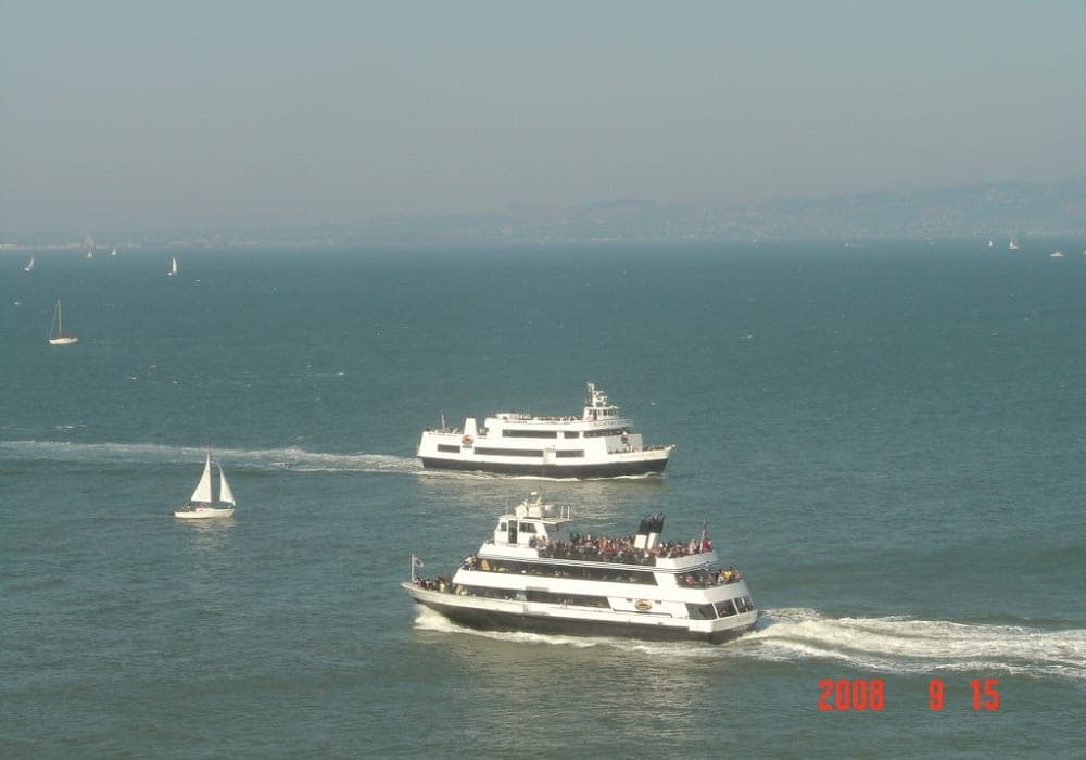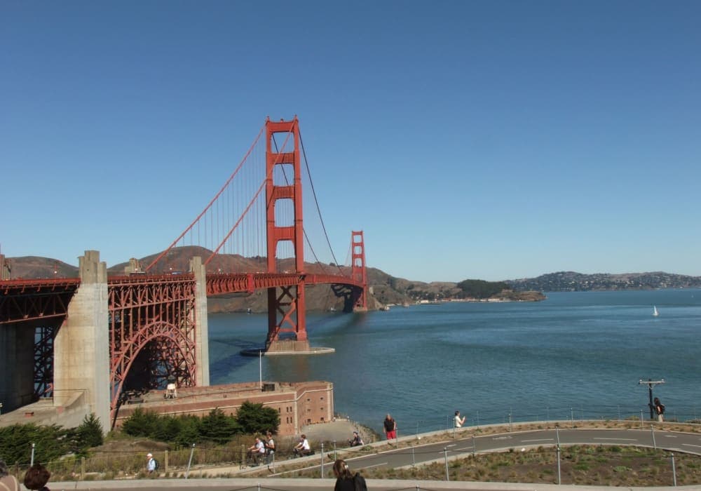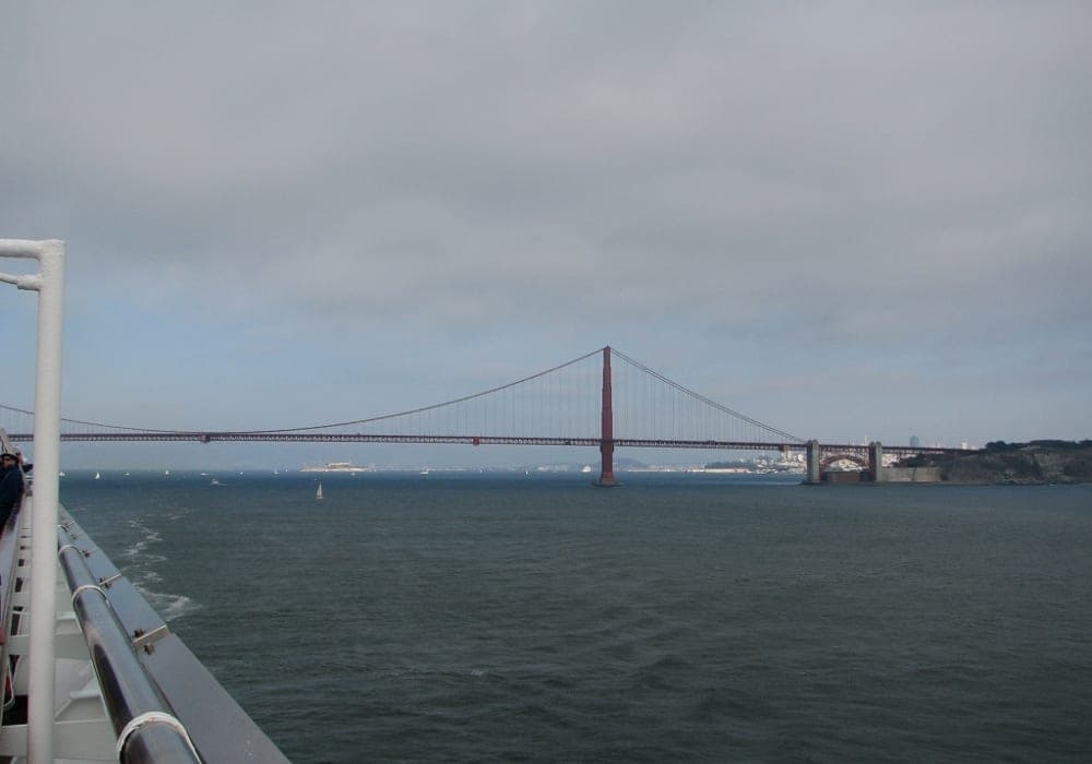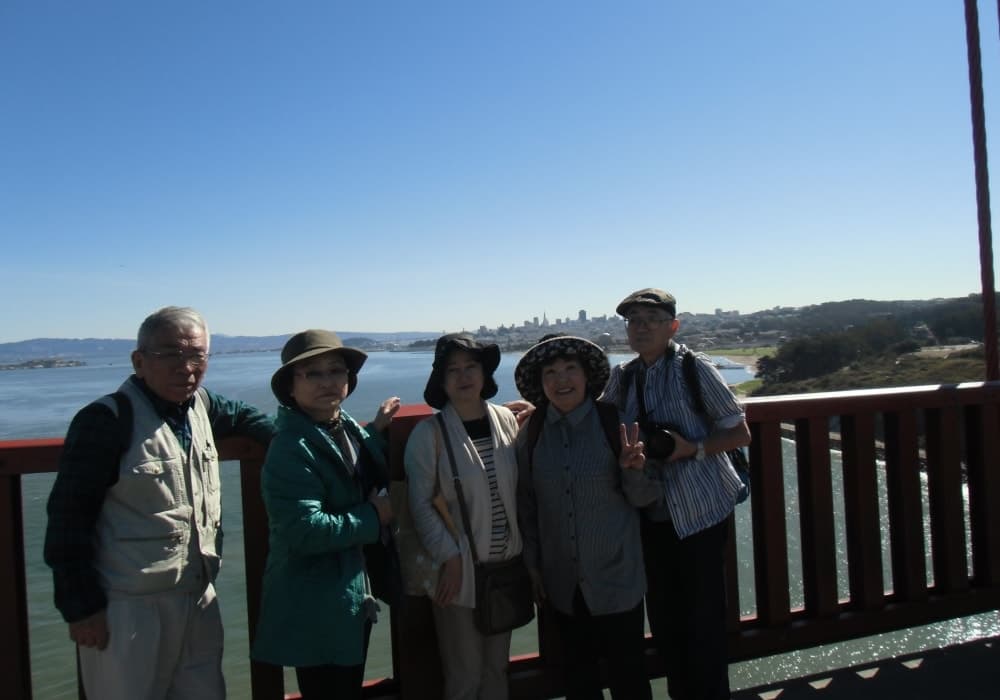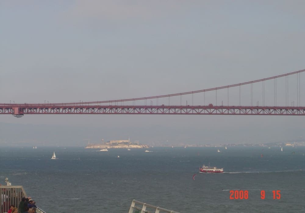 埠頭は繁華街に近く先ずは歩いてフィッシャーマンズワーフへ行き、サンフランシスコ観光の名物でもあるケーブルカーに乗車。 旅行ガイド本お勧めの「海沿いをサイクリング」というキャッチフレーズに惹かれ、レンタサイクルでゴールデン・ゲート・ブリッジを渡りました。橋の上から見るサンフランシスコの景観は素晴らしかったですが、坂道が多く途中トレーラー付き自転車の調子が悪くなったり道を間違えたりと幼児を連れての15キロの行程は大変疲れました。