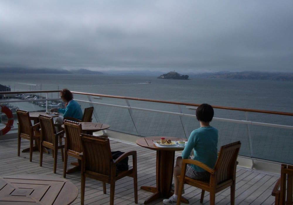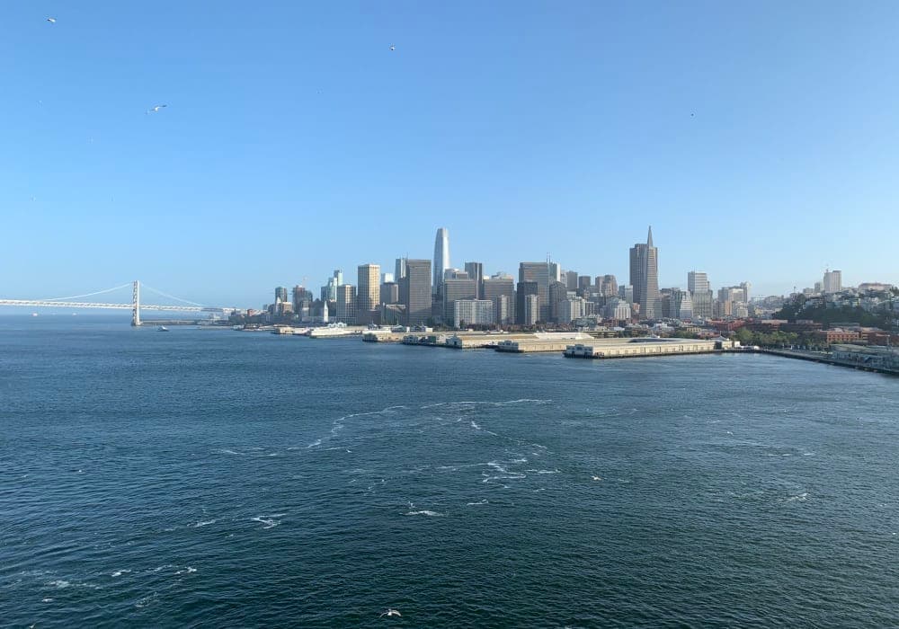 停泊する場所の周辺にはPier39もあり、とても栄えているので徒歩やケーブルカーで自力観光ができます。 今回はアルカトラズ島の元刑務所を見に行きました。アルカトラズ島へ行く船を日本にいる間に予約していったので、スムーズに乗船できました。アルカトラズ島では日本語のオーディオガイドをレンタルしました。ストーリー仕立てになっていて飽きずに歴史を学ぶことができます。刑務所の入り口前の広場からサンフランシスコの街並み(と、自分が乗ってきたクルーズ船)が見えるのですが、こんなに近いのに絶対に脱獄できないという状況に当時の囚人は何を思ったのかと想いを馳せてしまいました。
