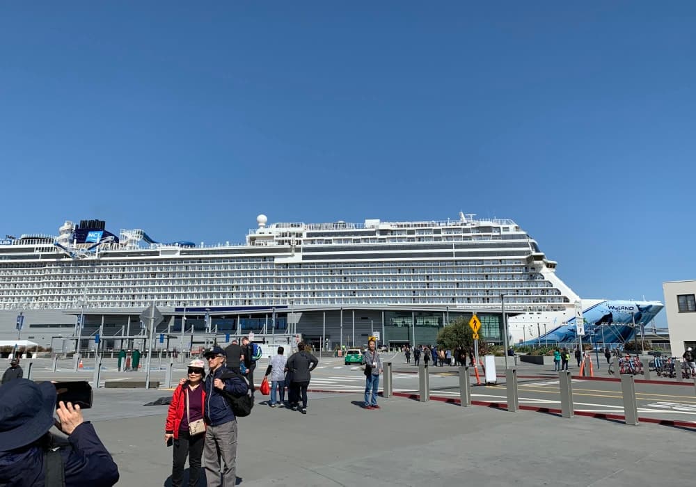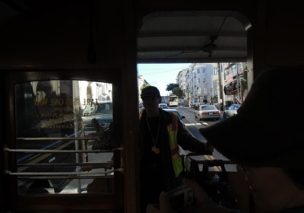 クルーズ代理店への質問は船は何処に停泊するかから始まった。Pear35に停泊するとの事。 「どうして行けばよいか?」の問いに「タクシーで」の答えはもの足らないものがあった。現地で見分した結果、Pear35は電車通り沿いにあり、埠頭の前に停留所がある事が判った。 そこで、乗船日の朝、始発のカストロ駅からフィッシャーマンズワーフ行の路面電車に乗車し、首尾よくPear35にたどり着く事が出来た。電車の窓から見るSFの市街地は市内観光の助けにもなったに違いありません。 電車、バスなどのSF市の交通機関にはシニア割引がある事を教えられた。